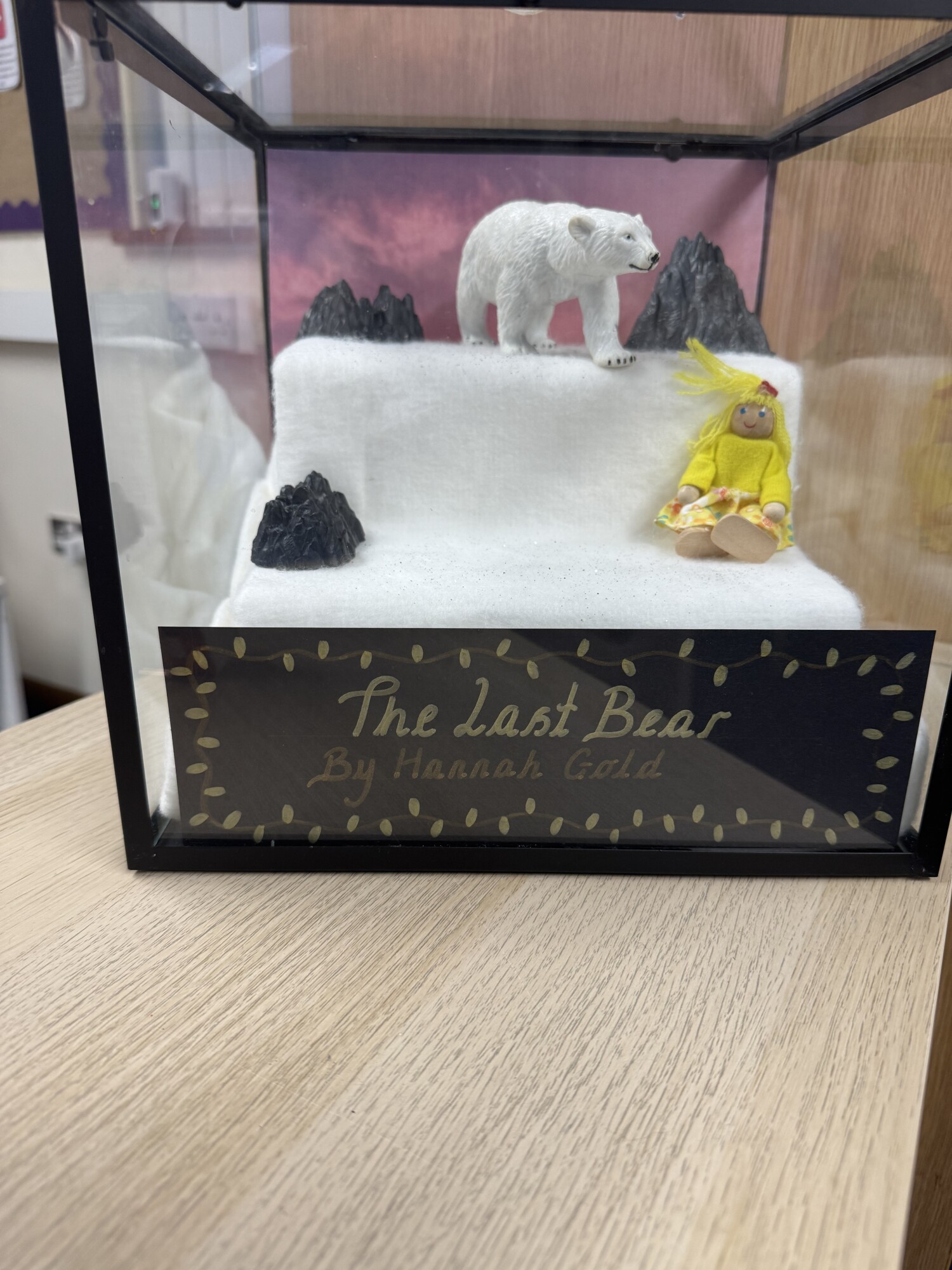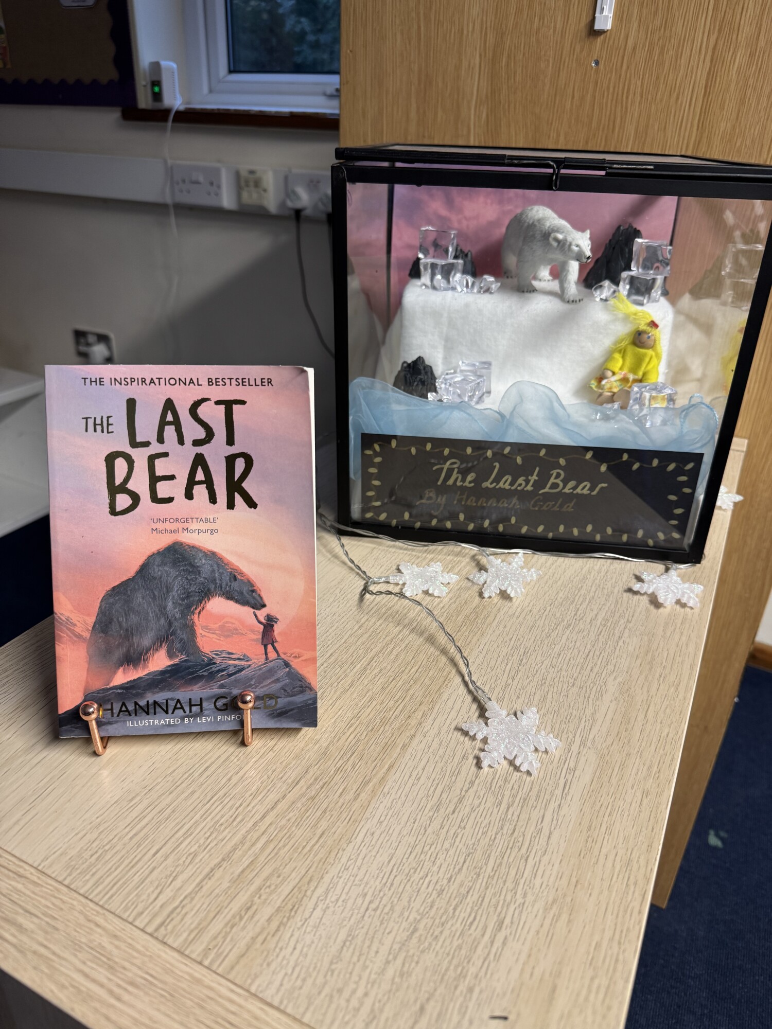 We have also been inspired by our class novel, The Last Bear by Hannah Gold. The children are completely captivated by April’s journey to the Arctic and her friendship with the last polar bear. To celebrate the story and encourage a love for reading, Miss Carter created a beautiful book display for our reading corner, featuring an Arctic scene from the novel. The items inside the glass display were kindly donated by Mrs Higgins, making it an extra special addition to our classroom. It has already sparked lots of interest, conversations and recommendations. Our reading corner has never felt so magical.