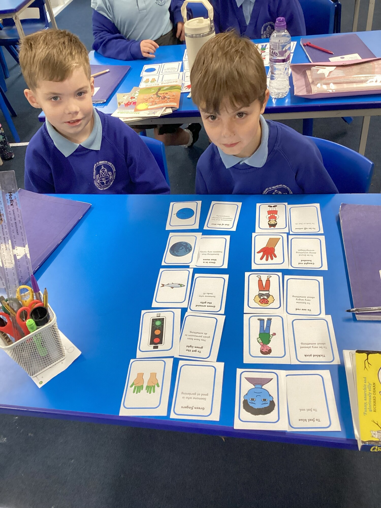 We started by learning the meanings of different colour idioms, then the children completed a matching activity to pair each idiom with its definition. This helped them understand the expressions properly rather than guessing, and gave them a solid foundation before using them in their own writing.