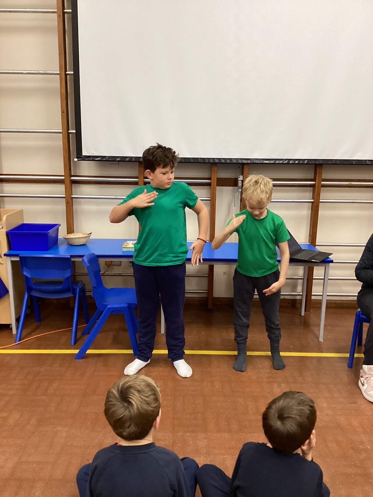 We then listened to a track called 'Inside the Factory' and moved around the hall as different machines, using clear, confident actions. The children also worked with a partner to think about electrical items they have at home, using sharp, robotic movements to bring them to life. The class enjoyed guessing which machine their friends were performing.