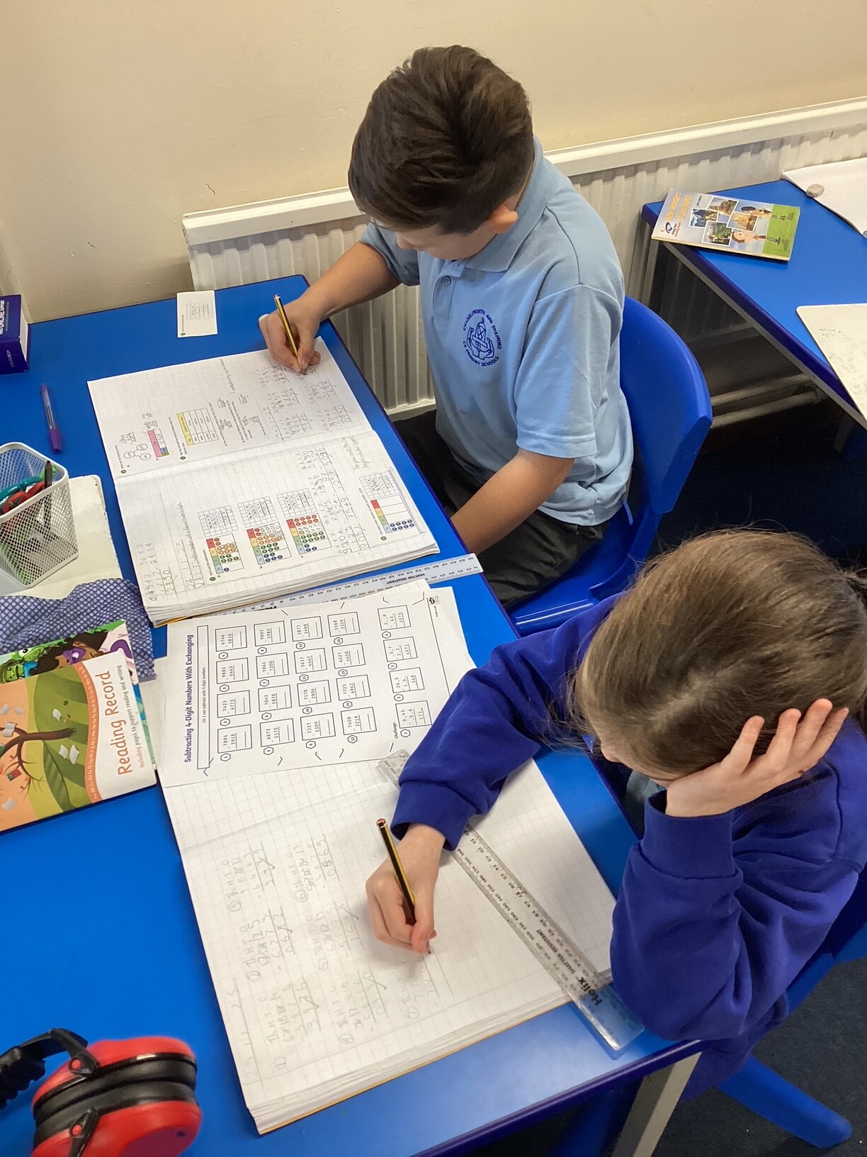In Maths we’ve been focusing on subtraction with exchange. The Year 4s have now mastered the column method and have been tackling reasoning questions to deepen their understanding. Our Year 3s have been using concrete resources like counters and place value charts to help them see how the exchange works. It felt tricky at first, but their confidence grew with each lesson.