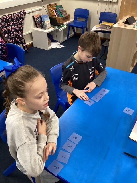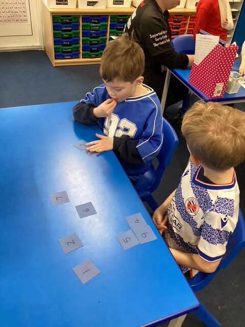 Our first activity introduced the children to the game Fifteen. Working in pairs, the children took turns choosing number cards and had to think carefully about how different combinations could be added together to make 15. What started as a simple game quickly turned into some impressive mathematical thinking. Children were predicting moves, spotting patterns, blocking their partner’s choices and explaining their reasoning using clear mathematical language. It was fantastic to see them so engaged, working collaboratively and really thinking like mathematicians.