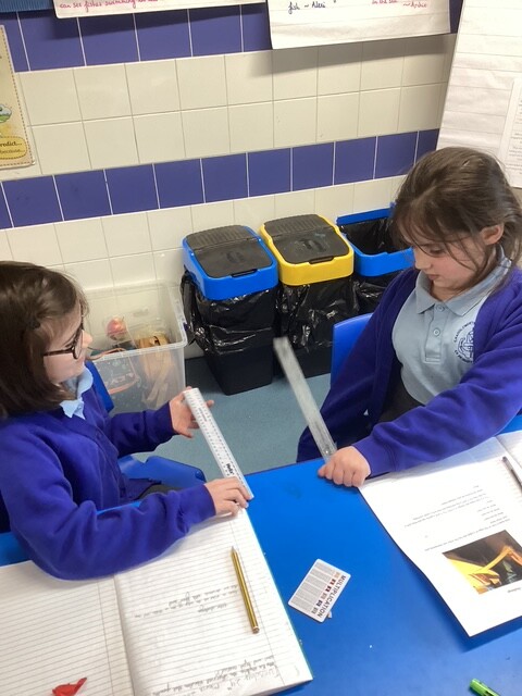 In Science this week, we carried out a practical investigation using rulers to explore sound and vibrations. The children held a ruler at the edge of a table and tapped it to observe what they could hear, see and feel. They then changed different variables, such as how hard they tapped and how much of the ruler was hanging over the edge. This helped them to notice how vibrations create sound and how the length of the ruler affects the pitch. The children enjoyed the hands-on learning and were able to explain their observations using scientific vocabulary.