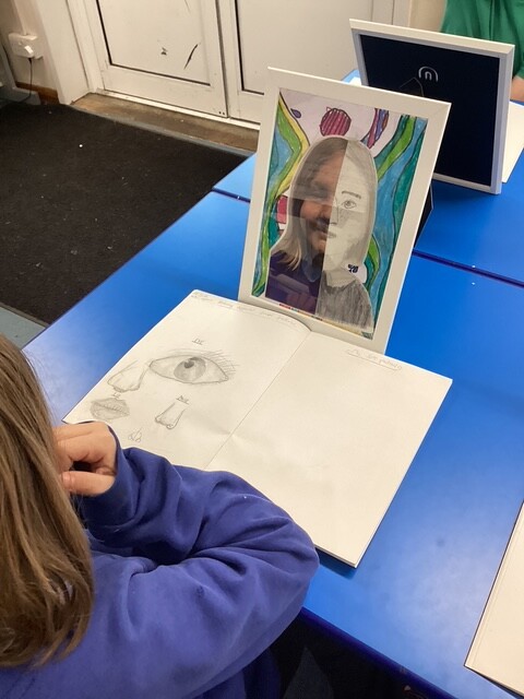 We also held a mini art exhibition in the classroom, where we invited our Headteacher, Mrs Munday, to come and see the children’s work. The children proudly showcased their self-portraits and talked through their learning journey, explaining the techniques they had used and the decisions they had made. They also reflected on their work, sharing what went well and what they would improve next time. It was lovely to see the children speaking with such confidence and pride about their artwork.