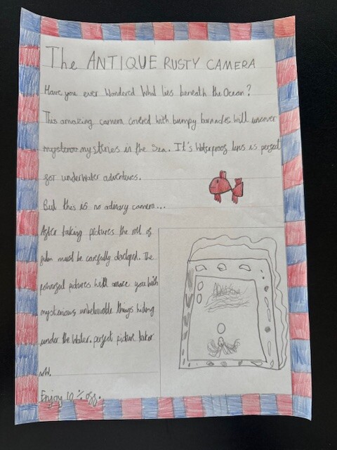 This week in English, we used Flotsam as our inspiration and the children took on the role of advertisers, trying to sell the mysterious camera found on the beach.