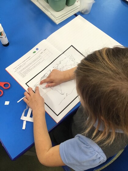 Once we'd located these on the map we discussed whether we thought they have hot or cold climates and why. Robins and Kingfishers were fantastic at giving reasons for this! They then worked hard to label their own maps to show where these countries were and describe the climates in them.