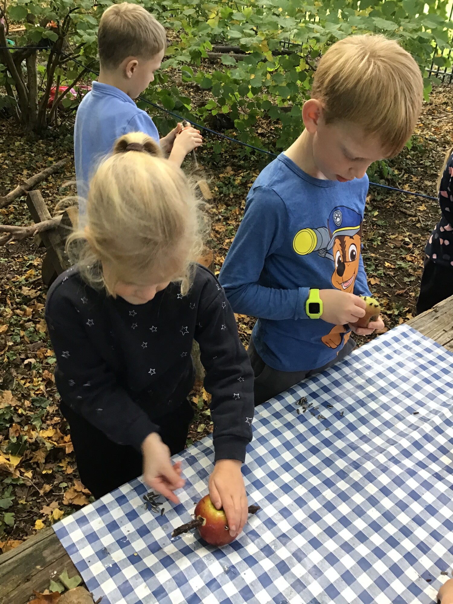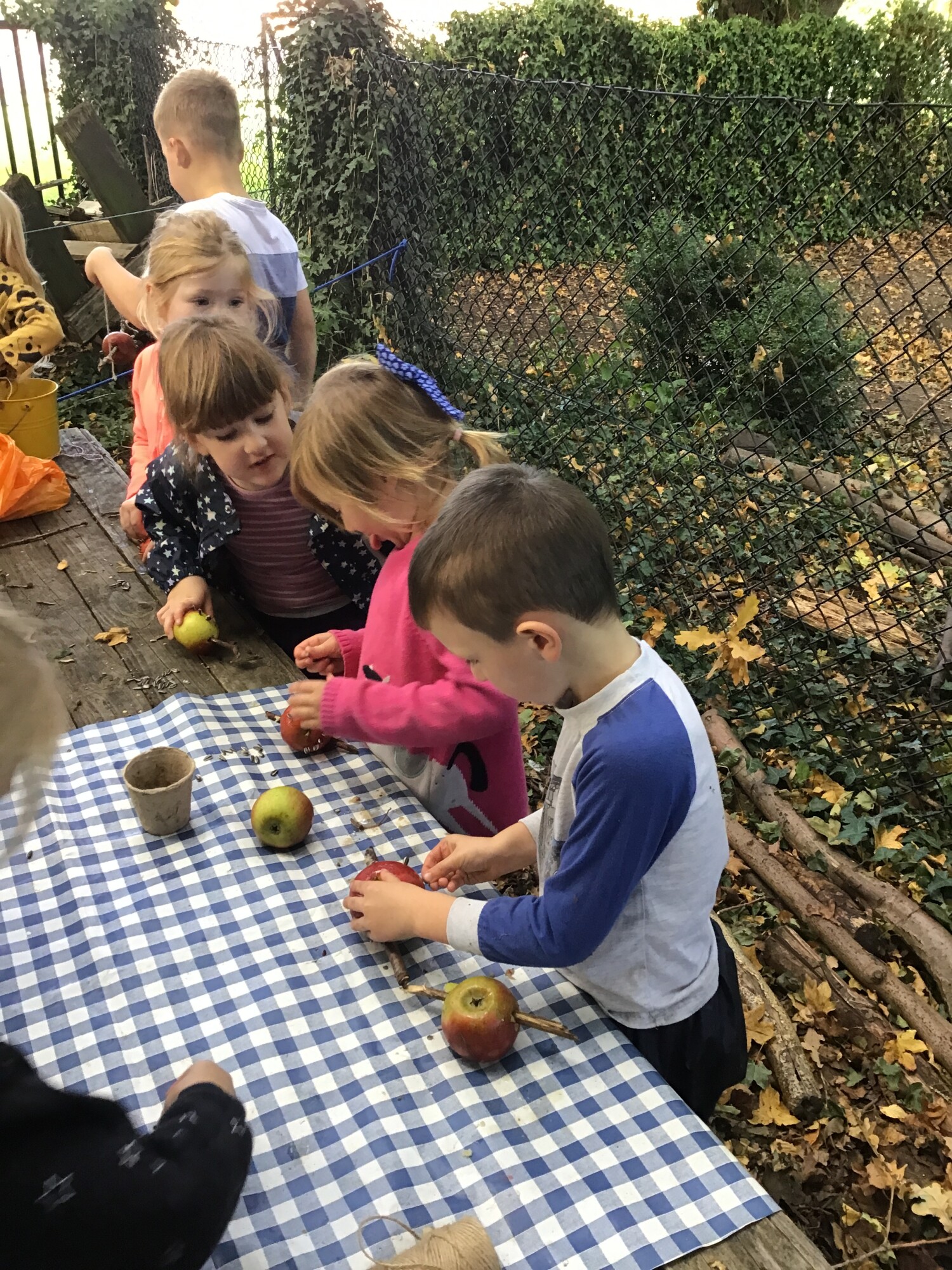 As always this term, we started the week with a fun filled session at forest school. The children had to find pretend spiders and their webs hanging in the trees, we made bird feeders from our last few apples from the apple tree, there was lots of balancing and as always, den making and lots of imaginative play!