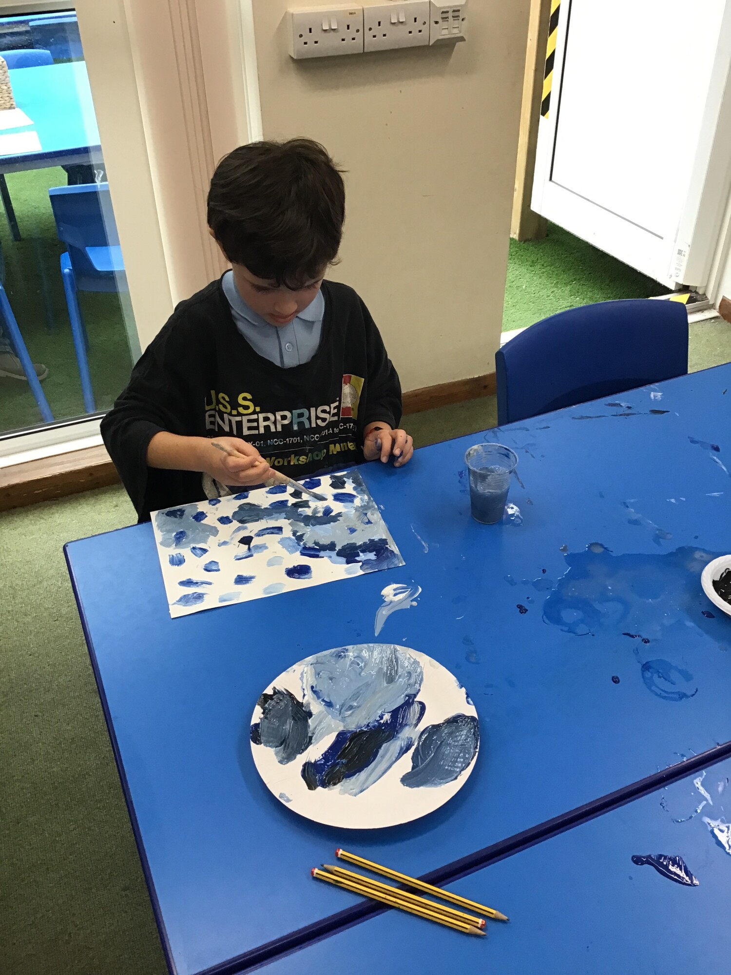 In art, the children have put all their skills that they have learnt over the past few weeks to the test. They have painted the background for their own "Starry Night" painting in the style of Vincent Van Gogh. They mixed lots of shades of blue and used short brush strokes. Some children even tried to create swirl effects with their brush strokes just like in the original painting "The Starry Night". We think there could well be some future artists amongst the children.