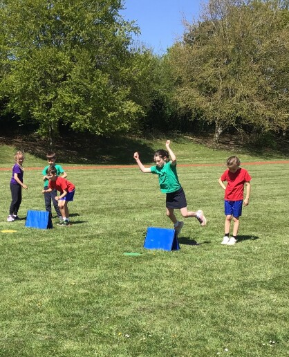 This term Coach Tom is helping us to develop the skills that we will be using on sports day, with the rubber dots helping us to work out where we needed to put our foot once we had jumped over the hurdle! This really helped us with developing our speed as we raised across them....