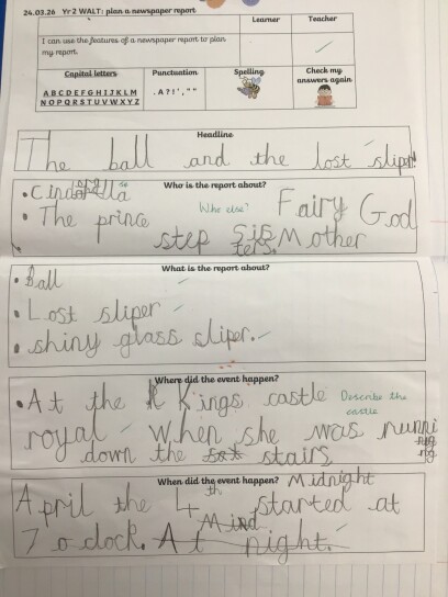 We could hardly believe that it was Friday already and this week we were merging what we had learnt about newspapers and our sequencing of Cinderella! It was time to become journalists and plan our very own newspaper report all about the spectacular ball that Cinderella had attended!