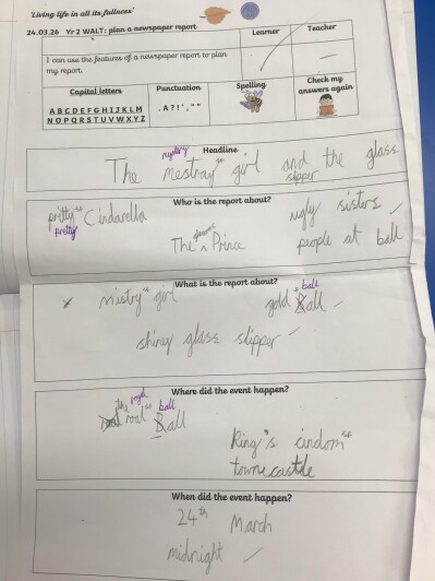 We have had another busy week "living life in all its fullness". The week started off with Year 2 looking at the features of a newspaper report as they are going to write their own newspaper report linked with the story of Cinderella that we have been reading. We discovered that newspaper reports have a headline, an introduction, information, pictures and captions.