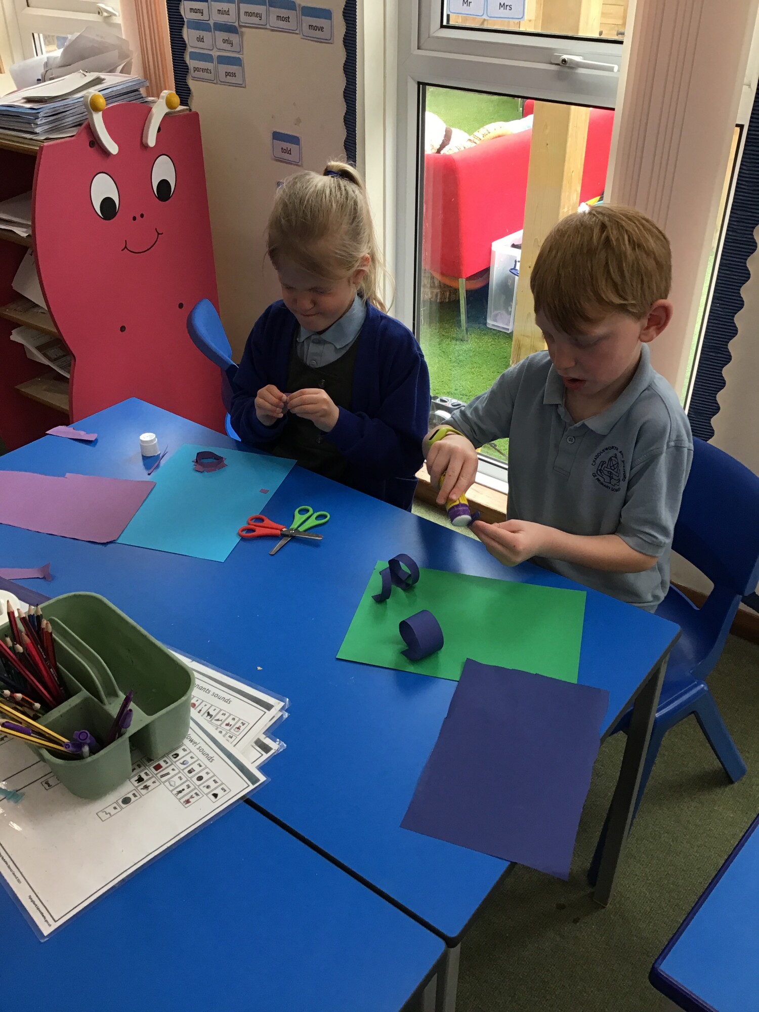 In art Year 1 and Year 2 had a go at sculpting with paper. We wanted to see what we could do with paper. Have a look at what we managed to create using just paper and glue!