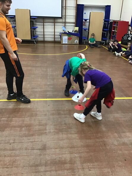 After a little warm up, it was time to put some skills into a practice and work in 3's! This time two of us had to work against each other with a 'tree' in the middle, while the third player was the referee. When the referee said go the two players had to keep their feet either side of their cone and using their hands try to reach around the 'tree' to take the tag from their opponent!