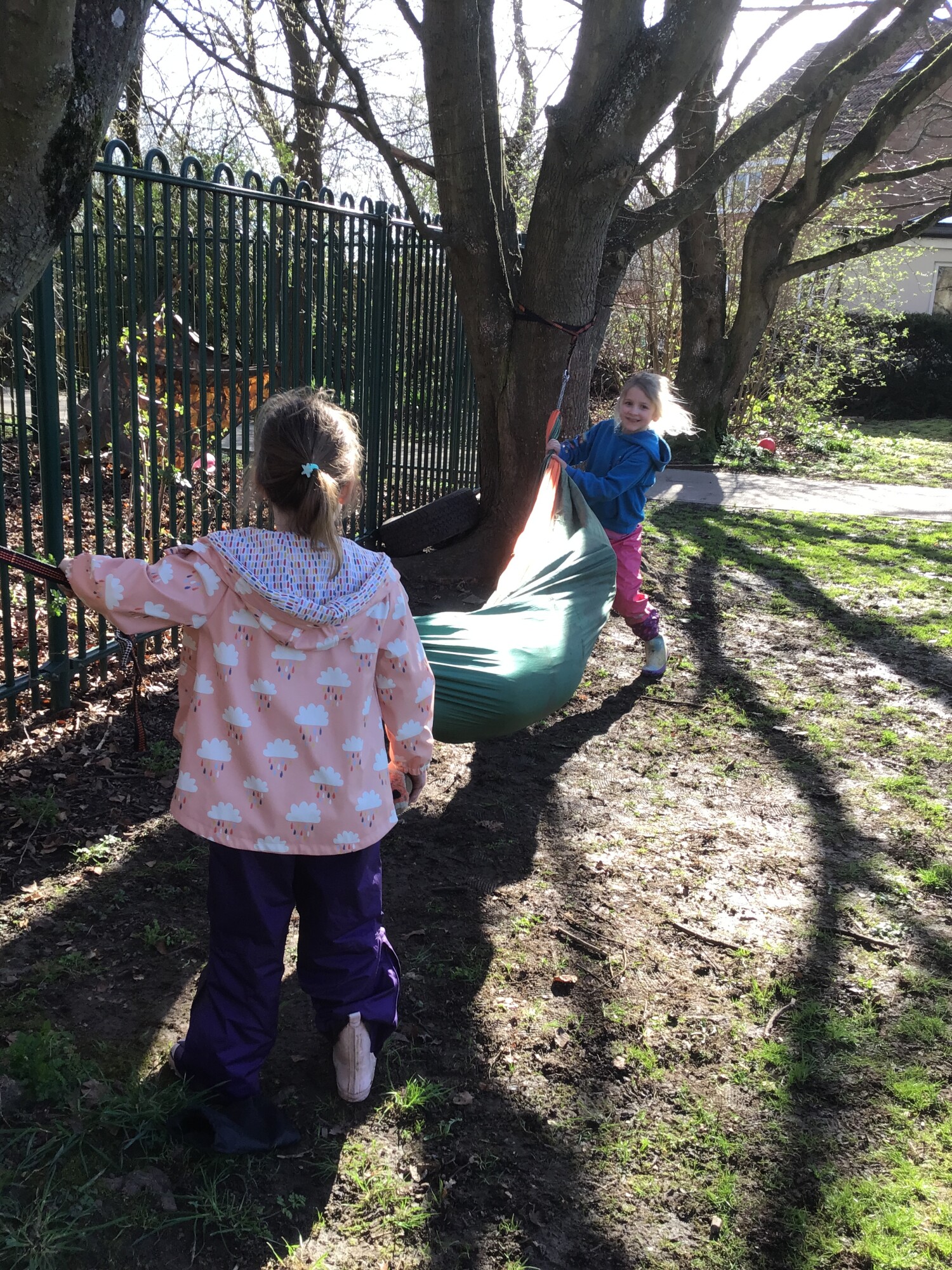 Monday started with a beautiful afternoon in forest school. Spring was in the air and the sun was shining. The children had great fun playing in the pond, making wands, building nests for birds, making swings and digging for worms! Great fun was had by all!