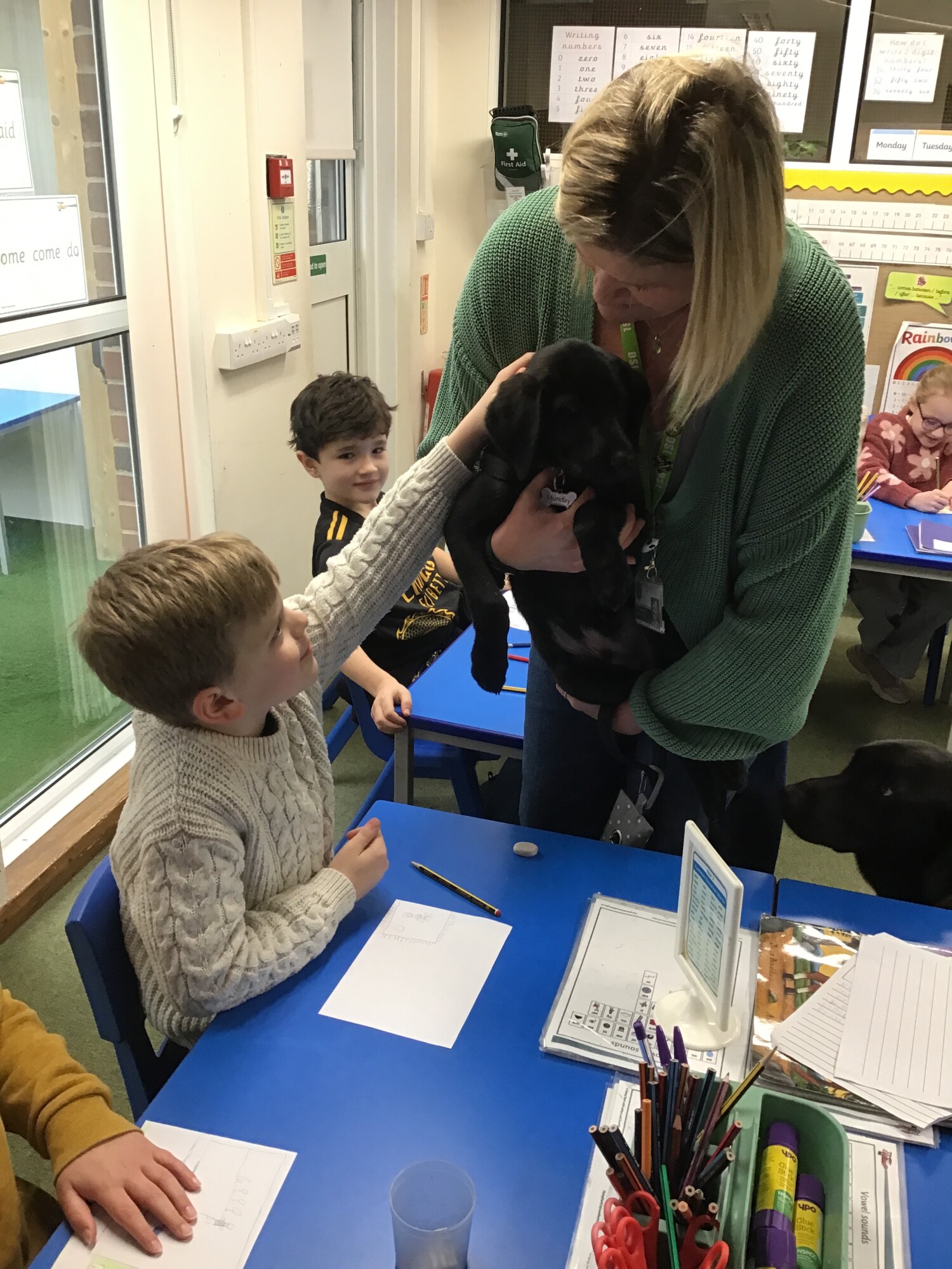 He was a beautiful puppy version of Rascal and Rascal was keen to stay right by his side the whole time! He even kept close by when Storm came to see us in our classroom!