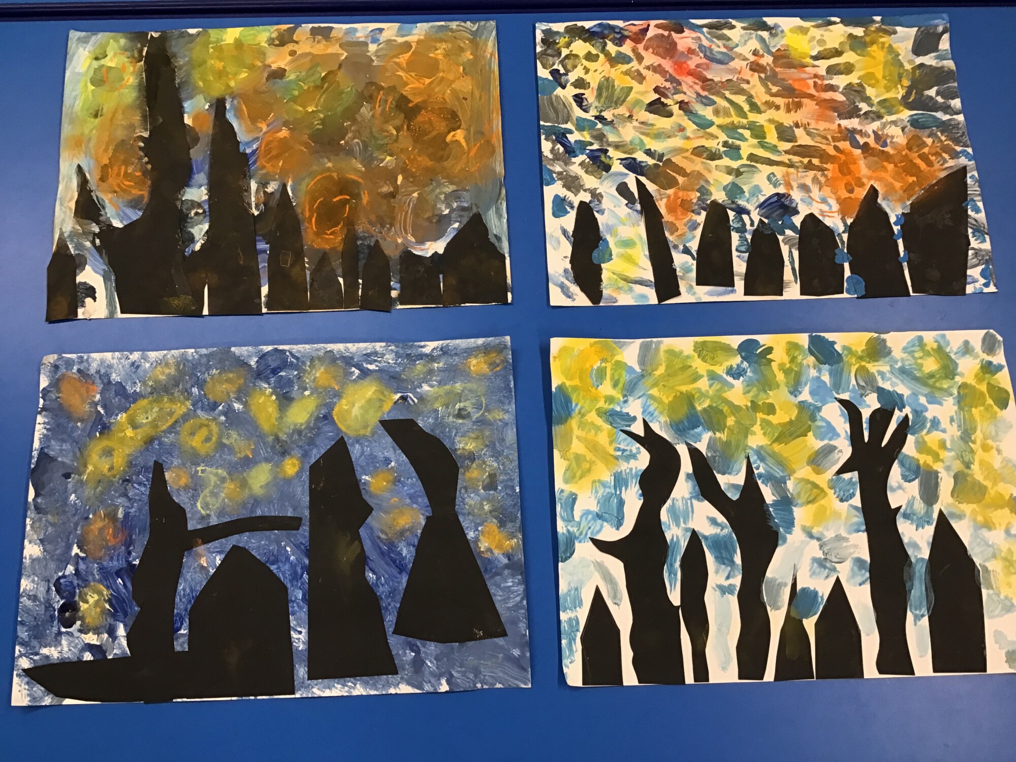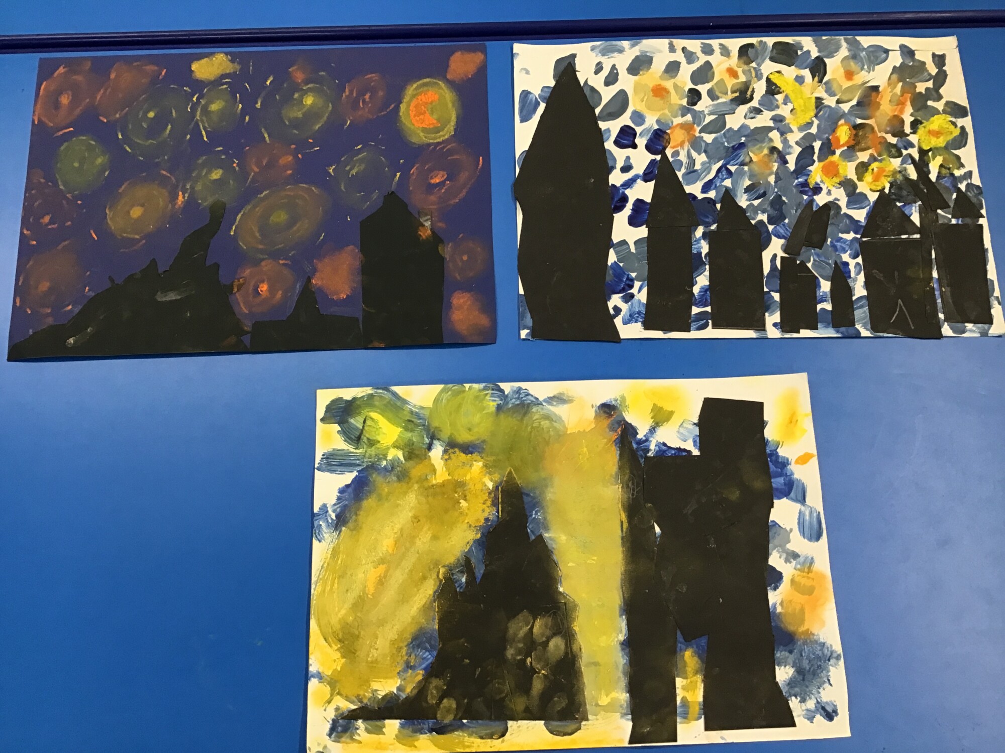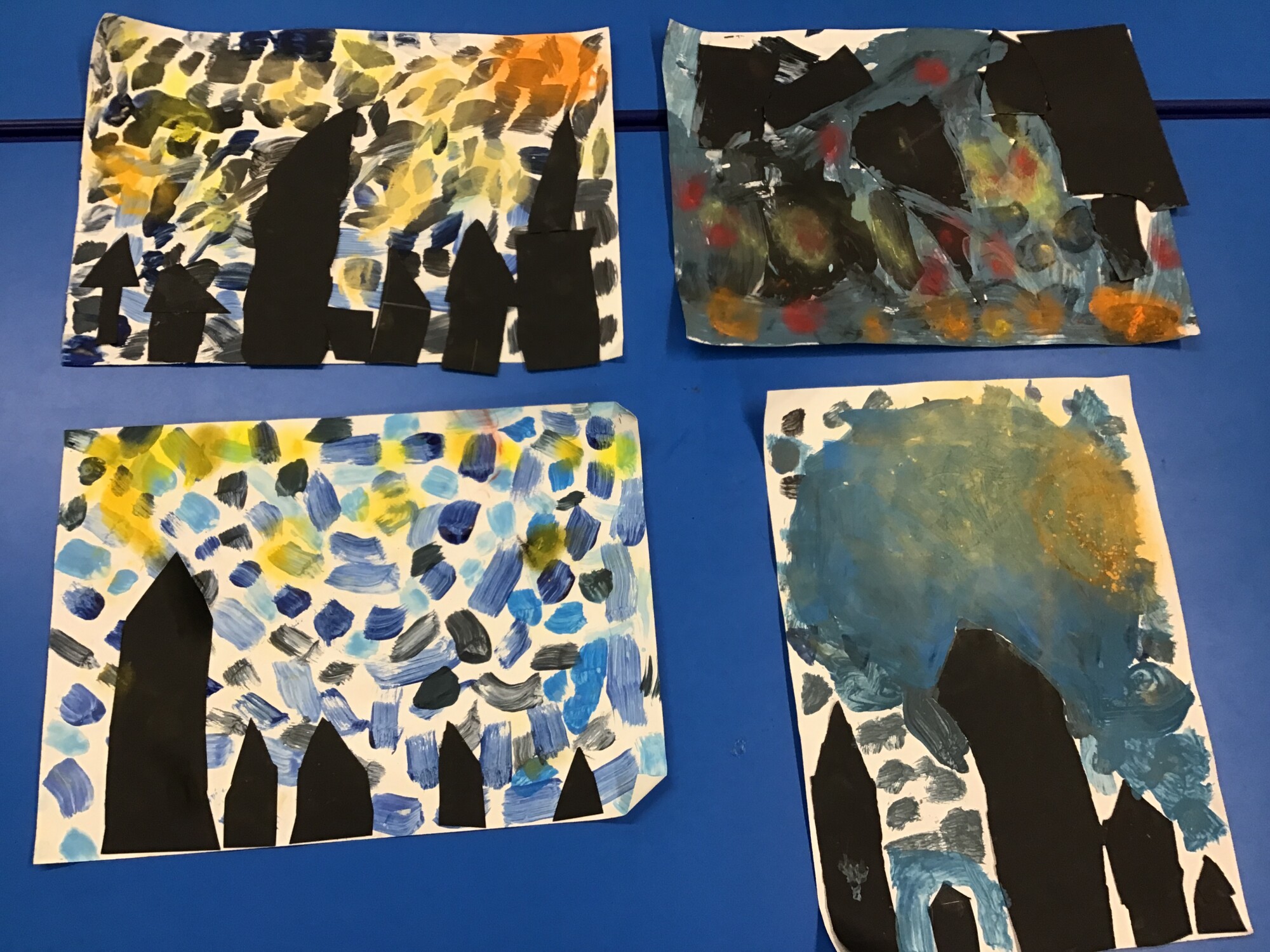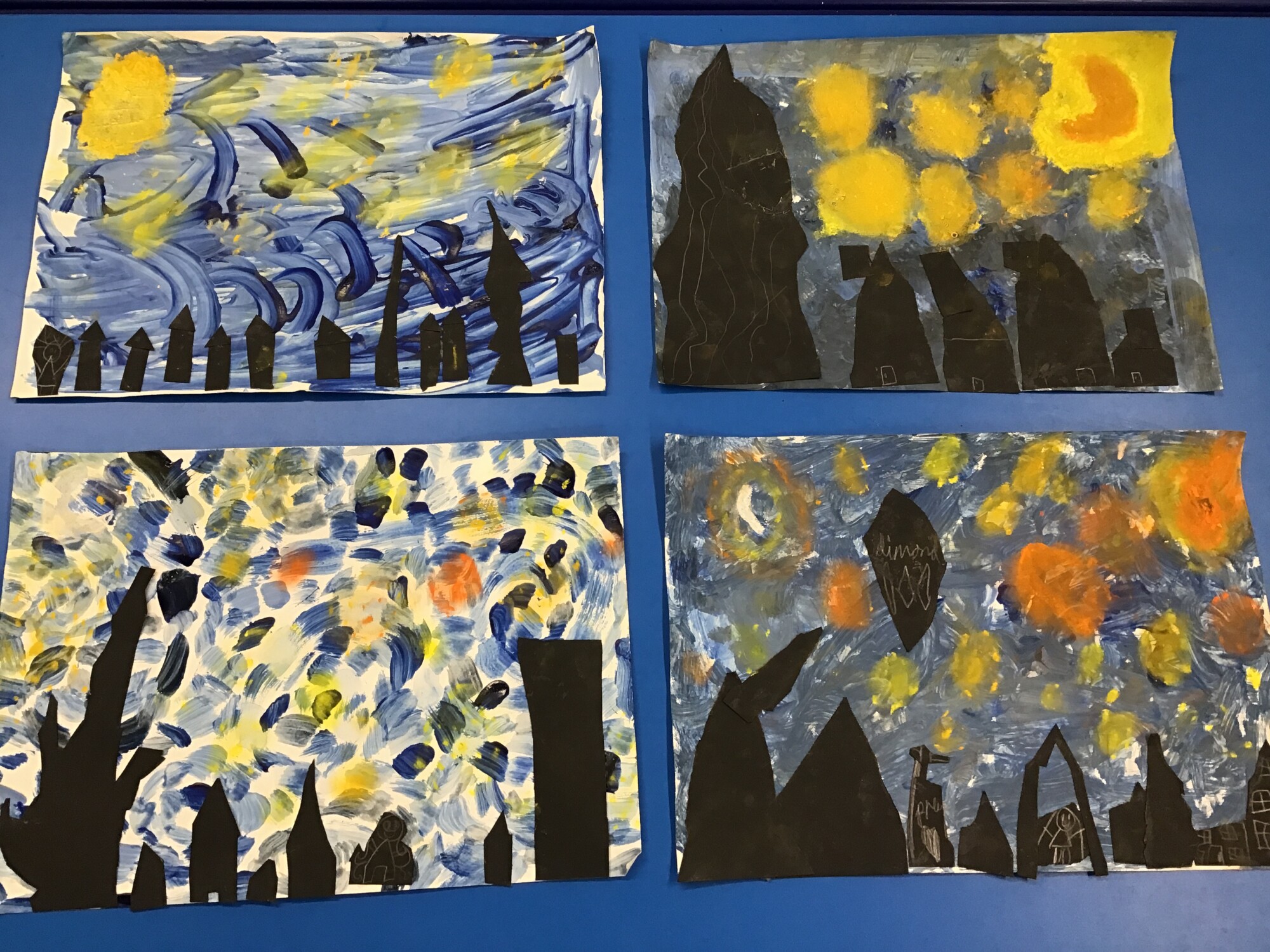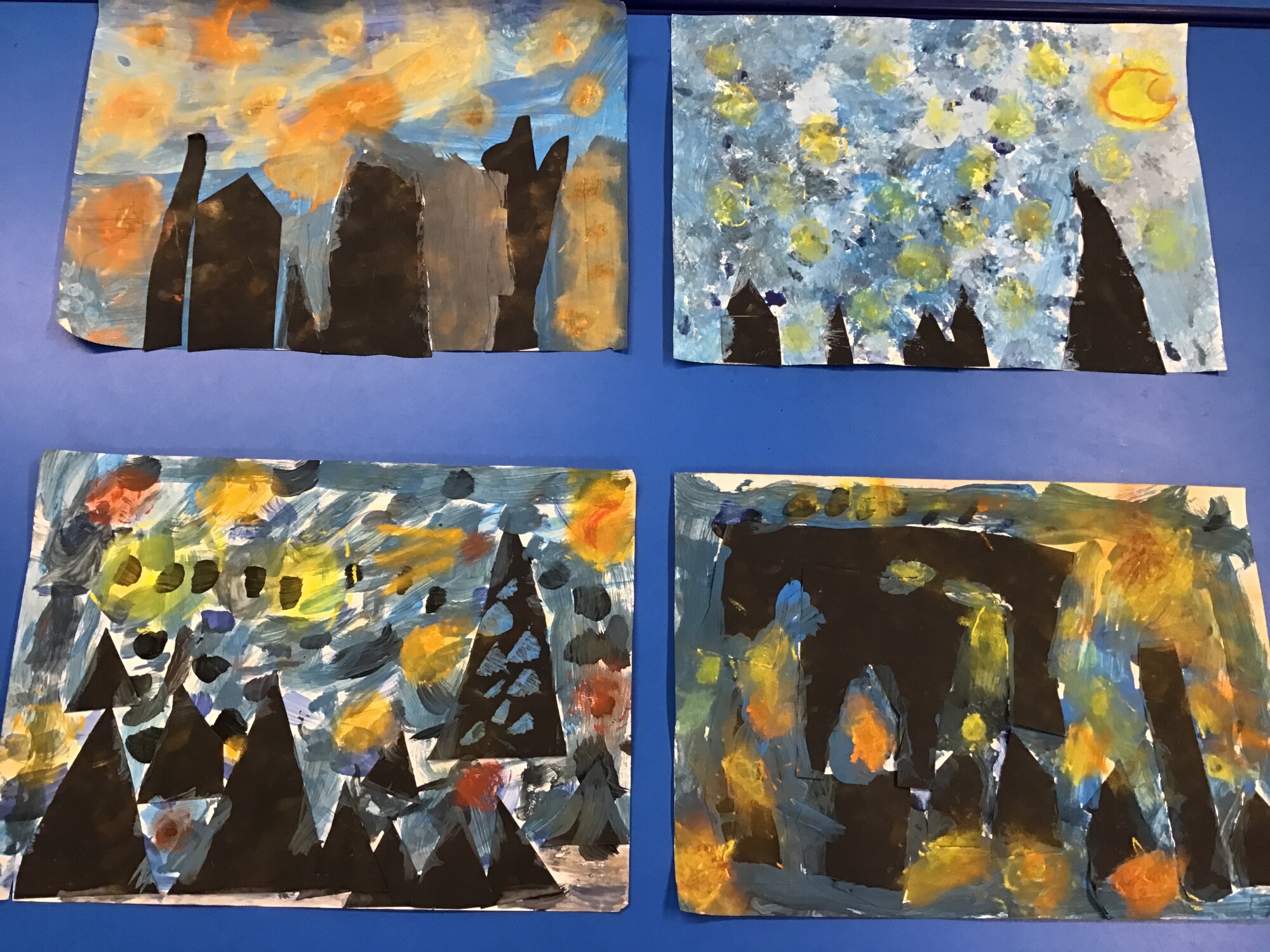 This week we have finally completed our own versions of "Starry Night" by Vincent Van Gogh. We think you will all agree, the pictures look amazing!