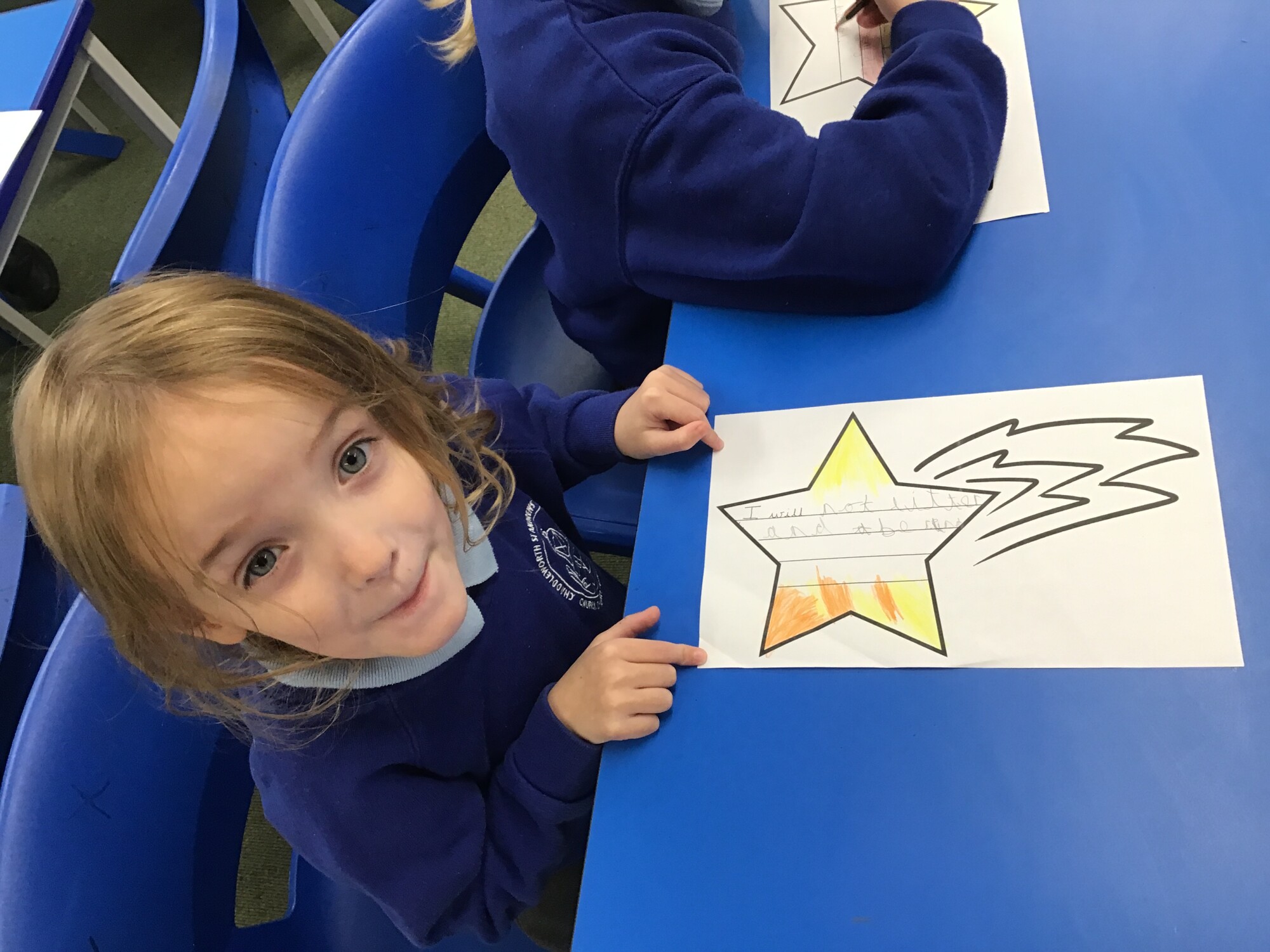 "I will not litter and I will be kind" "I will look after others" "I will help people"