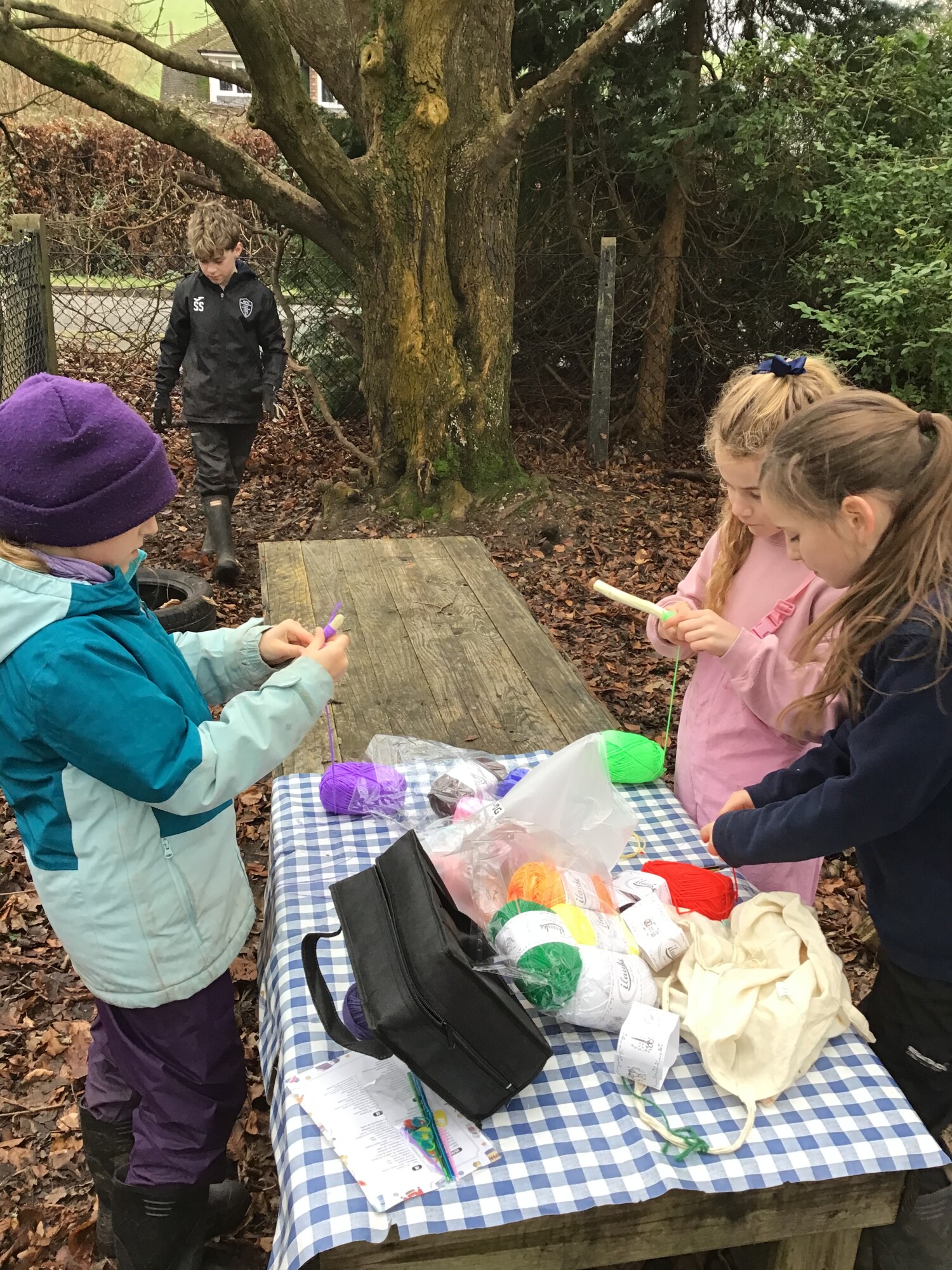 On Monday, we had a brilliant Forest School session led by Mhairi. She brought in some toy birds which we had to spot, talked to us about the RSPB Big Birdwatch and brought in binoculars so we could try our hands at birdwatching. One group even build a hide! Mhairi also brought in equipment for whittling and yarn for crafting. Look at some of the wonderful things we made!