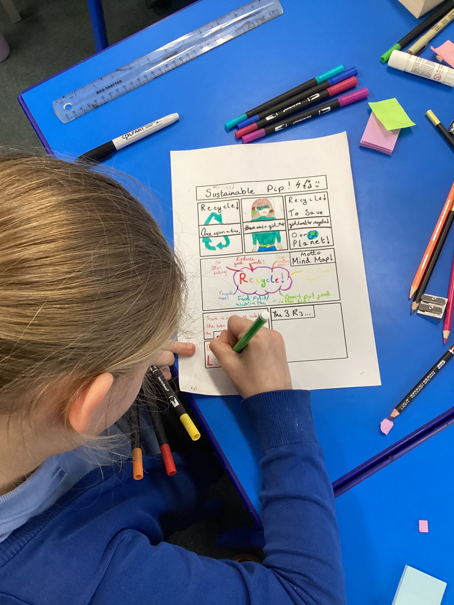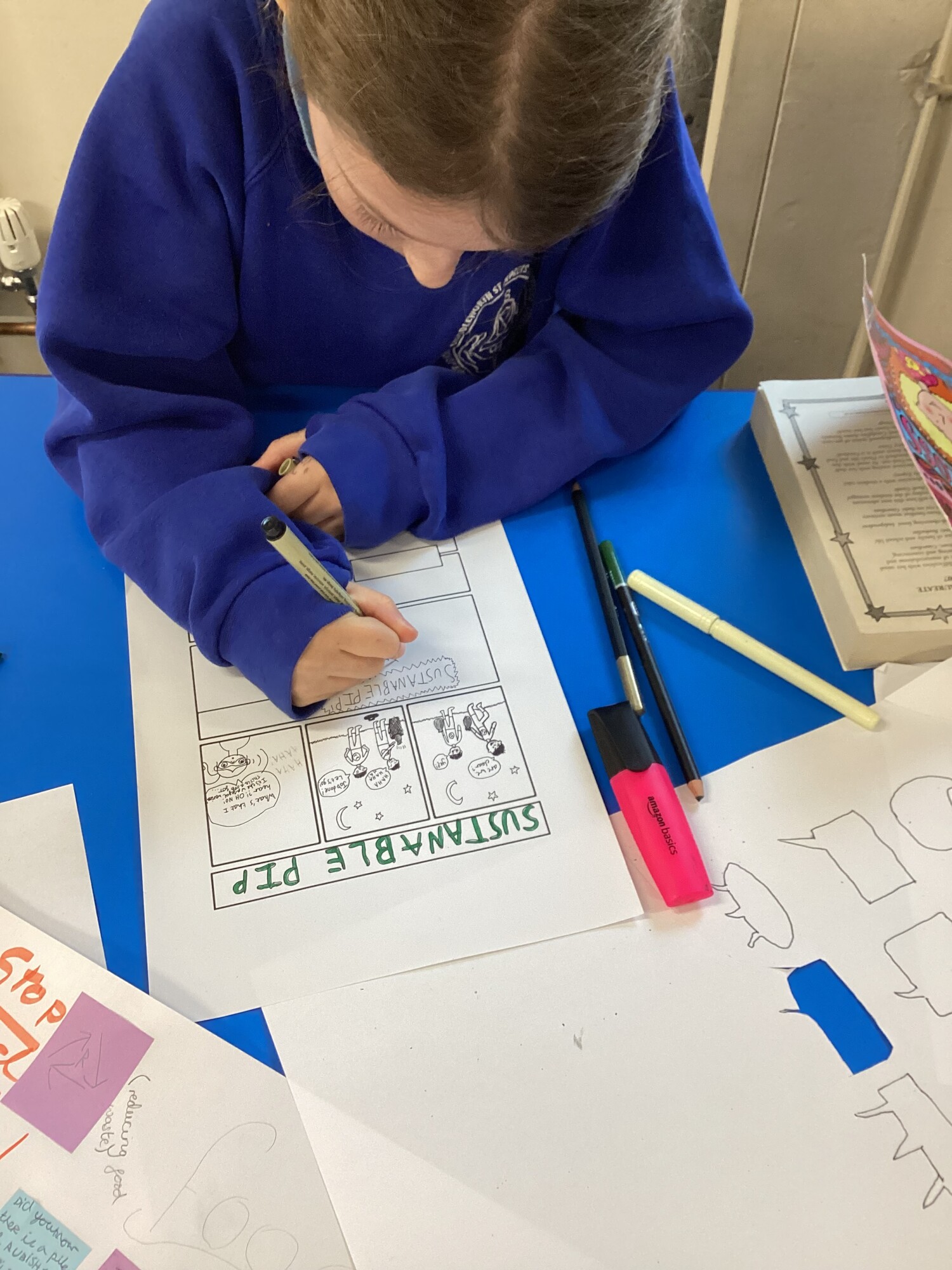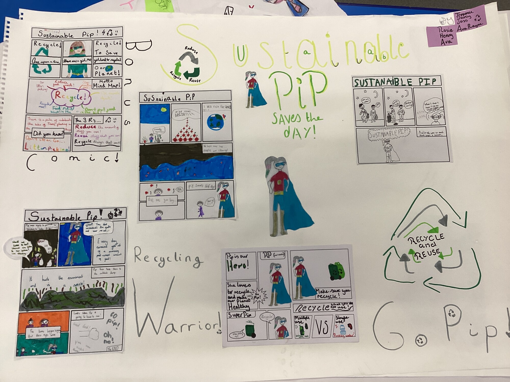 On Thursday afternoon, we had a group from WeSET visit to run a Comic Co Creation Sustainability workshop. We discussed renewable energy, using resources sustainably and choices we can make for the benefit of the environment and community around us. We were then tasked to come up with a comic - including a sustainable hero - in our groups. The collaboration was incredible and our visitors commented on how engaged everyone was, how knowledgeable they were and how well they worked together. The comics produced were fantastic and featured heroes such as Walter the World and Sustainable Pip. Look how well the finished projects came out!