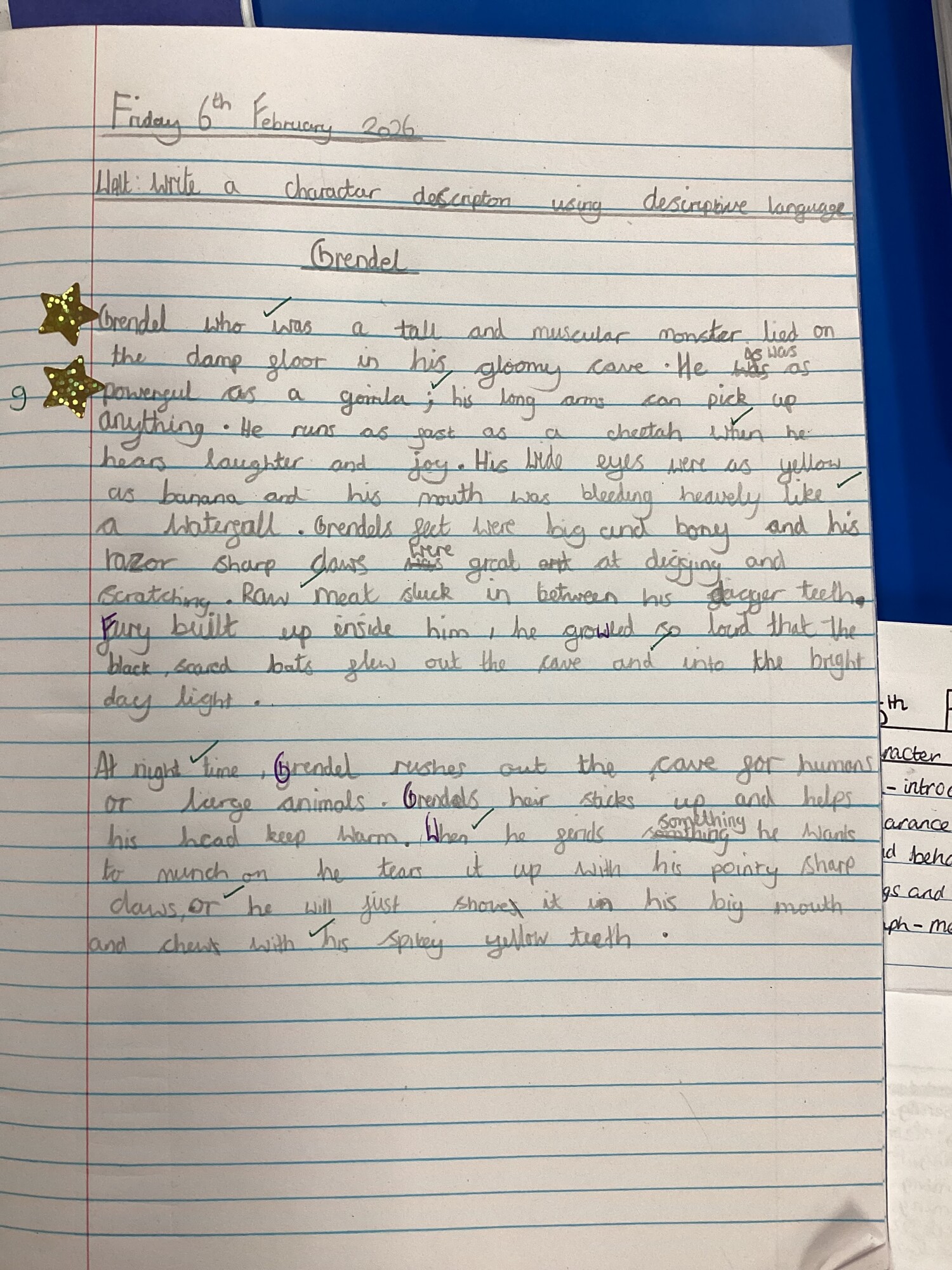 We have not let the weather dampen our spirits though. In English, we started to explore ‘Beowulf’ by Michael Monpurgo. It was all about vocabulary – finding examples in texts, using word banks and a thesaurus to up level words. Using our new list of vocabulary and phrases, we wrote a character description about Grendel. They are incredible! Next week, we are going to write a CV for Beowulf. In Maths, it was all about fractions – multiplying, dividing and finding fractions of amounts. We worked very hard to follow the processes and did an amazing job of answering lots of different types of questions. Next week, our focus will be decimals.
