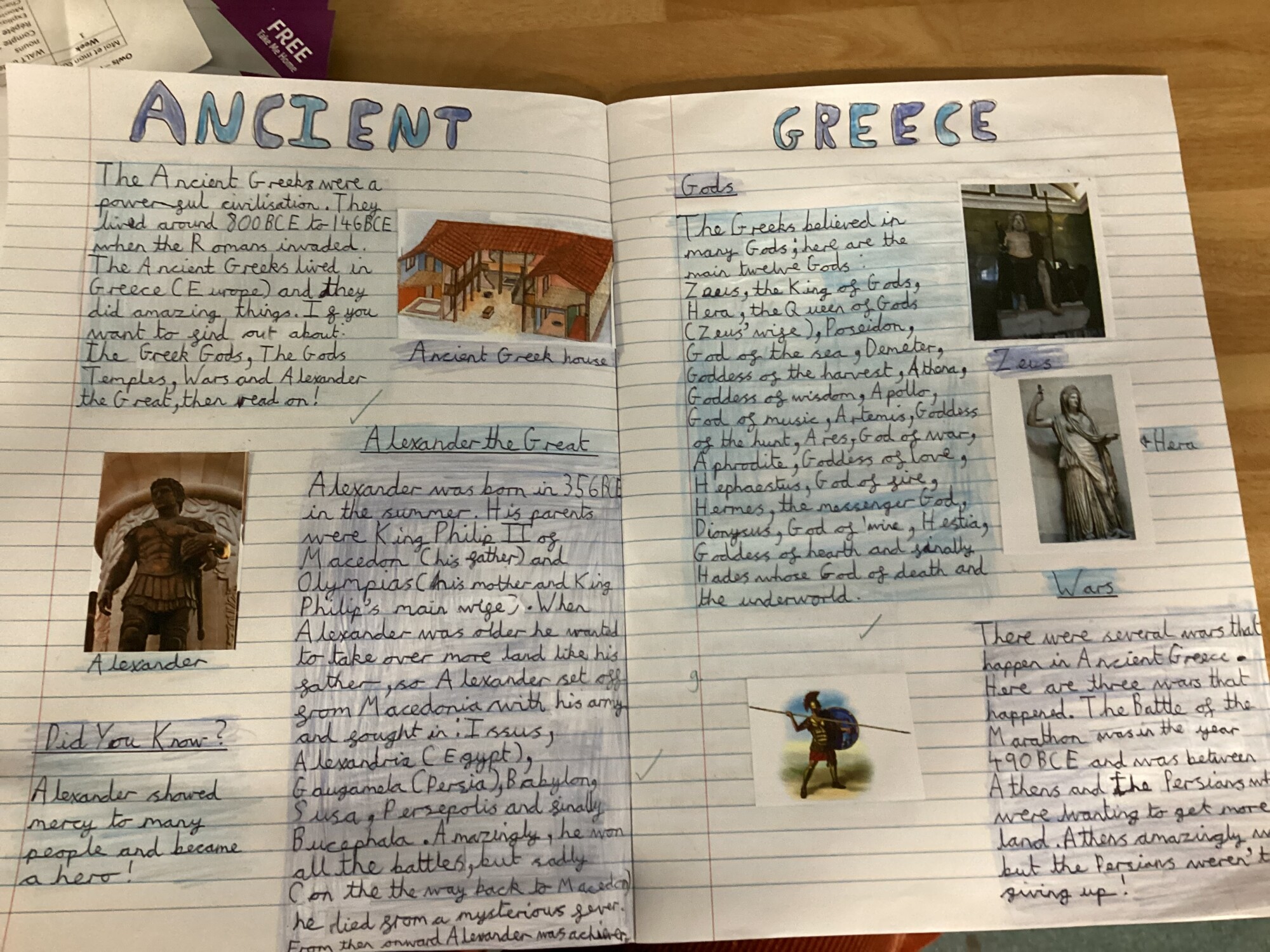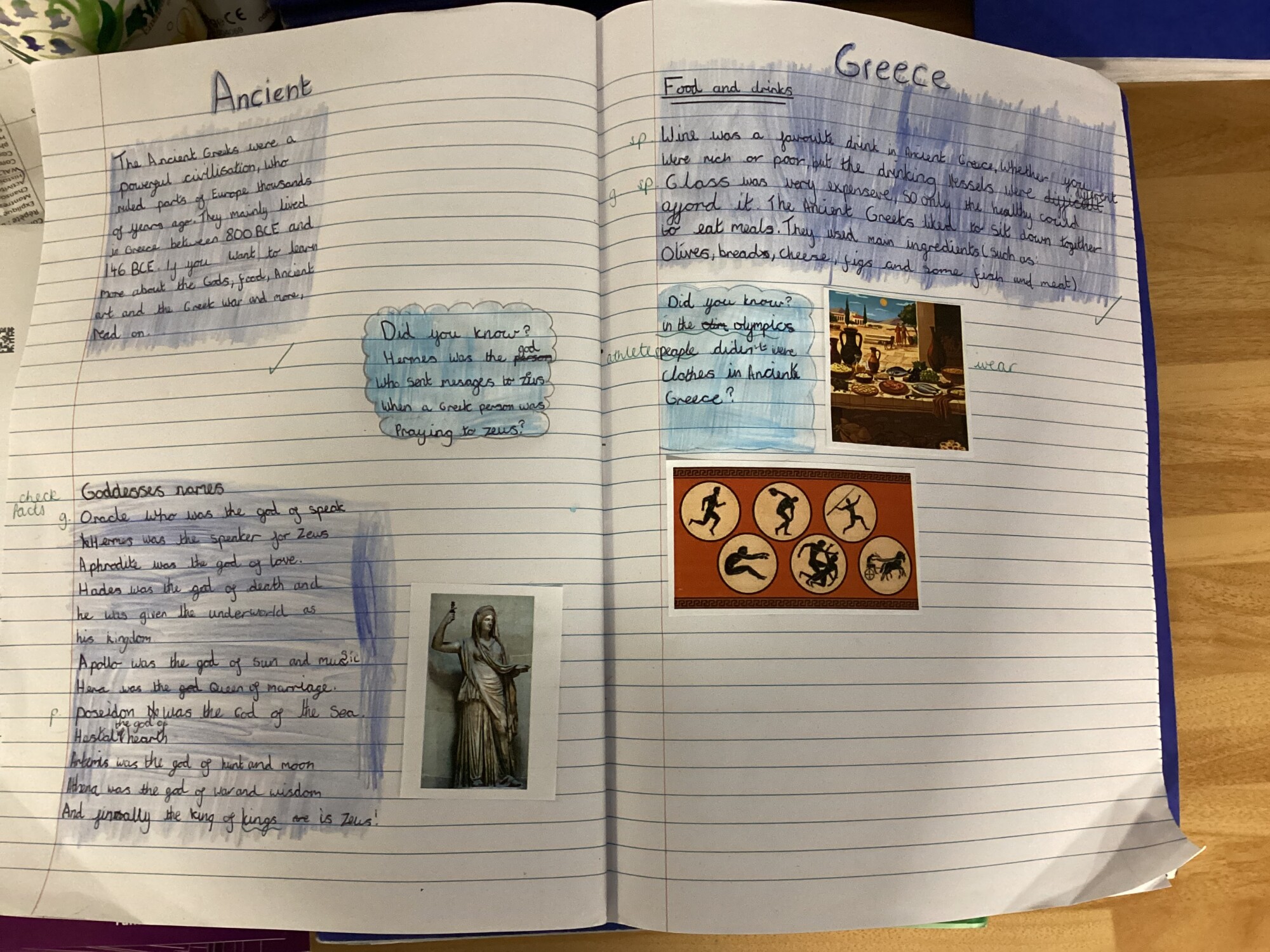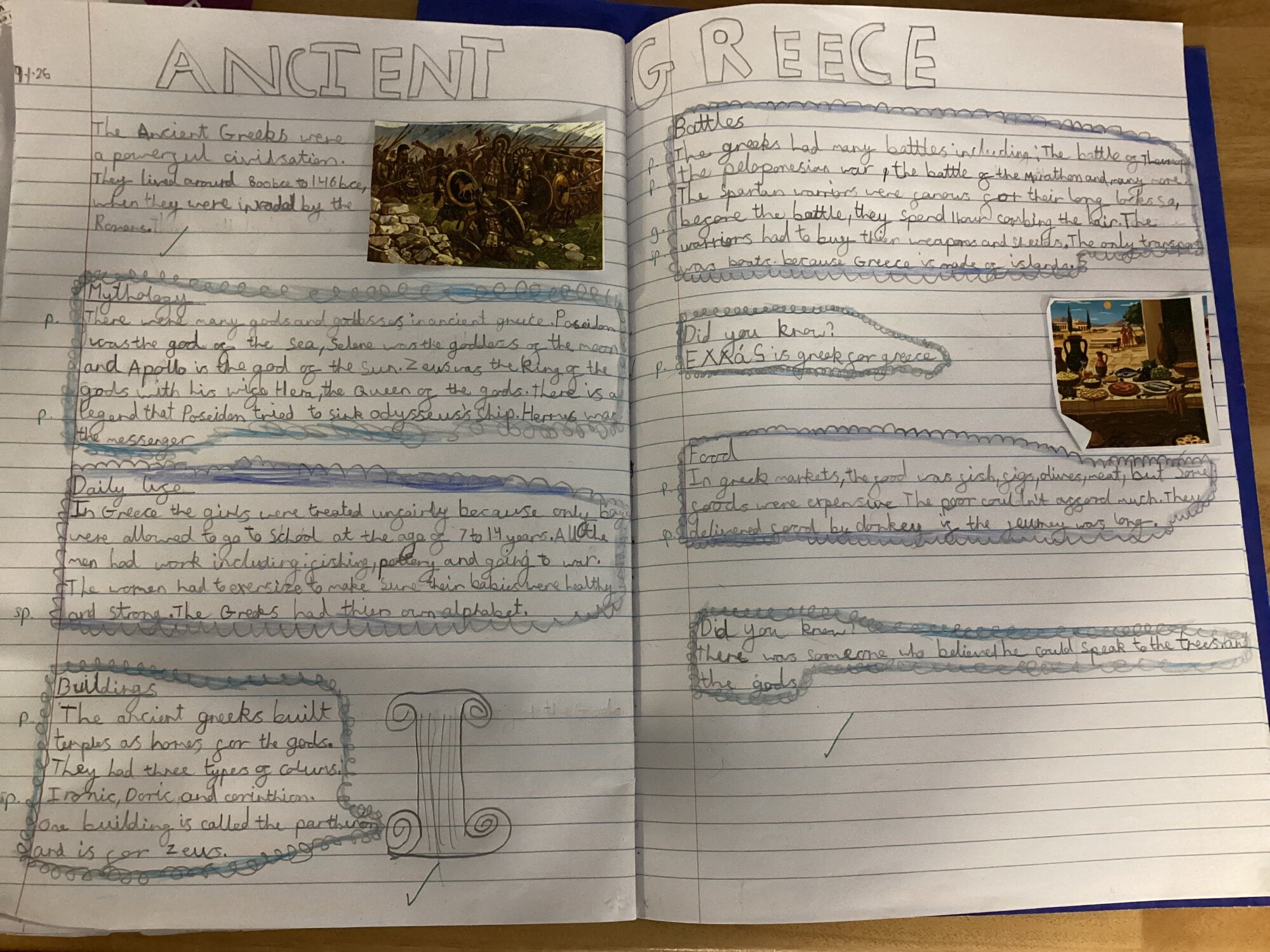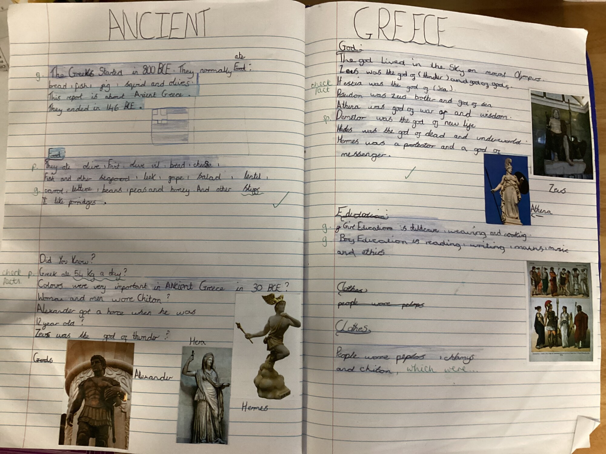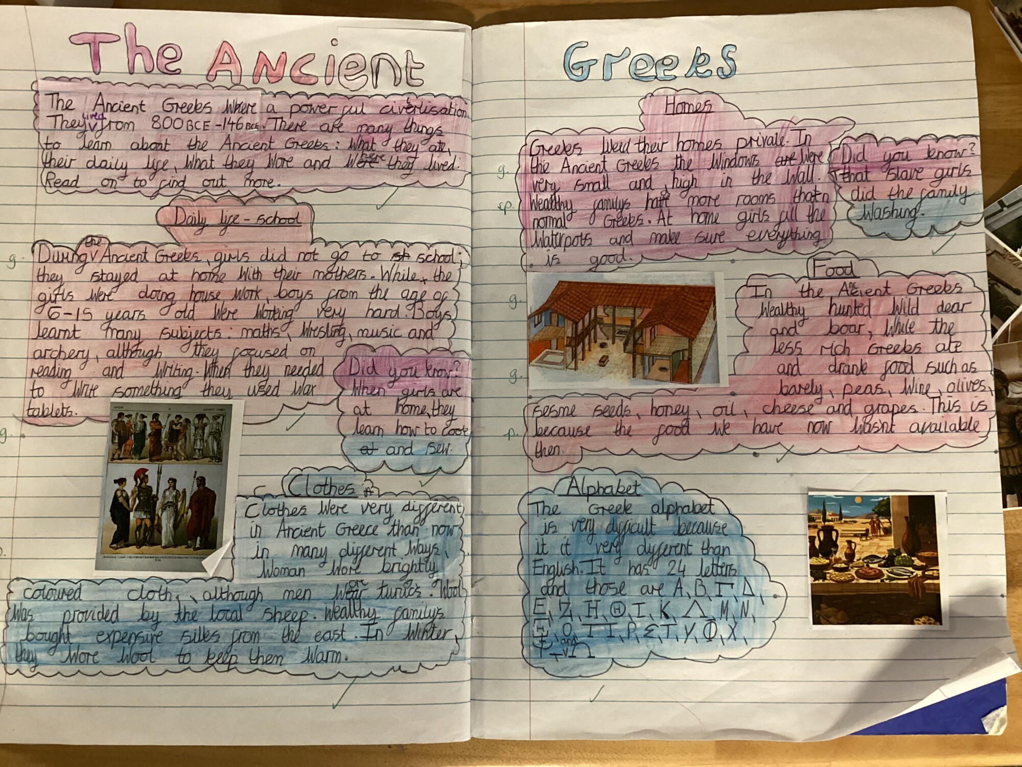 In English this week, we planned our own setting descriptions and then wrote them. We tried really hard to include senses descriptions, figurative language and adverbials. Our use of punctuation is definitely improving and the children are putting in a lot of effort. Once we had finished our setting descriptions, we moved our attention to writing our double page spread about the Ancient Greeks. We focused on research for a couple of lessons and how to take useful, efficient notes. Then we created informative, well-presented non-chronological reports. Next week, we will be working on creating an exciting plot for a narrative based on Malamander by Thomas Taylor.