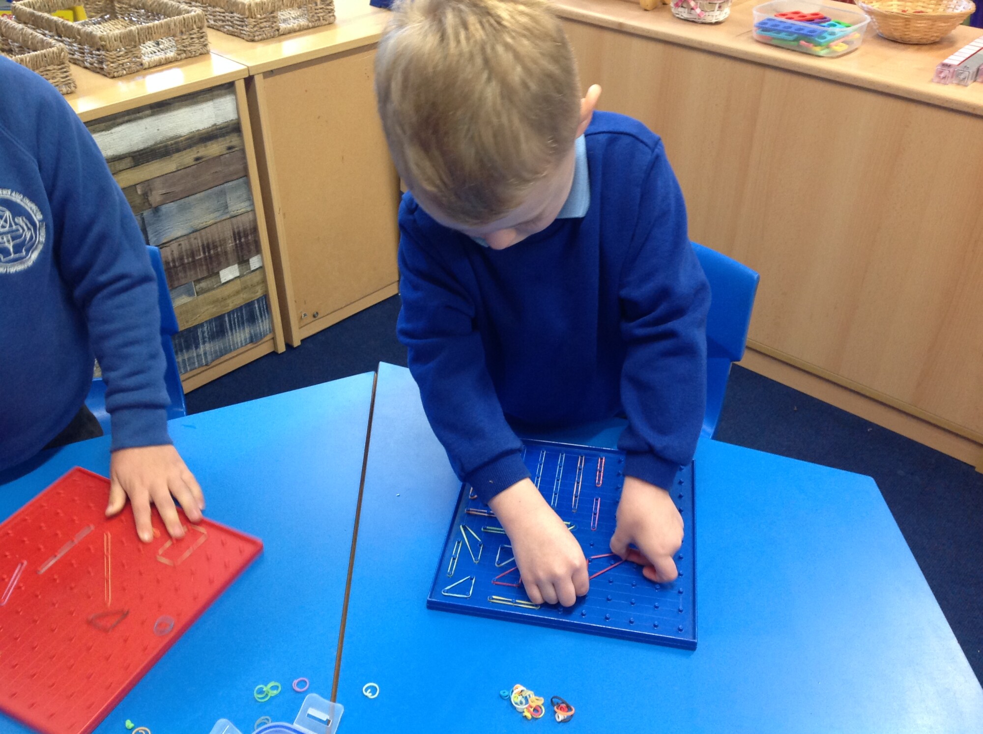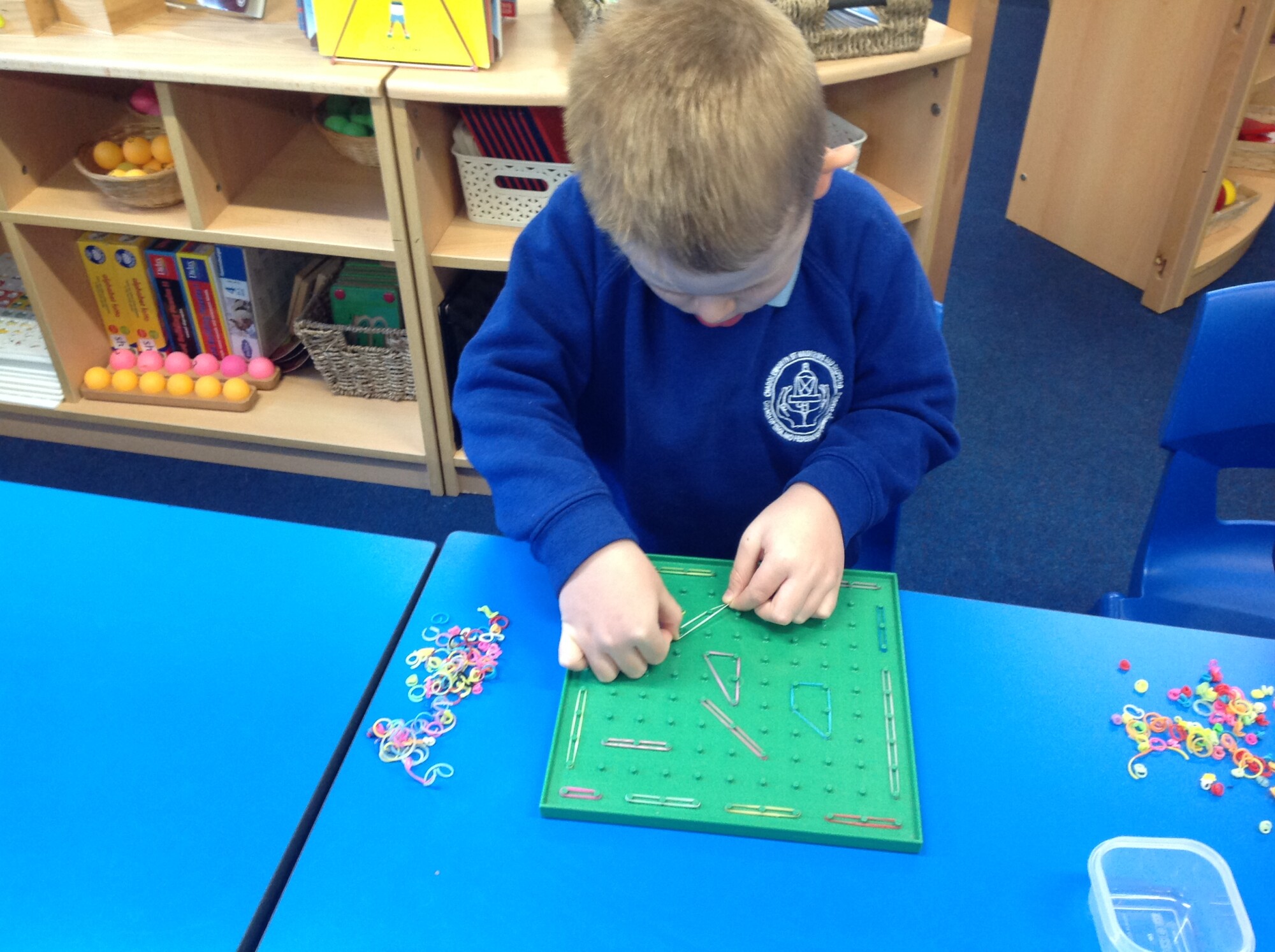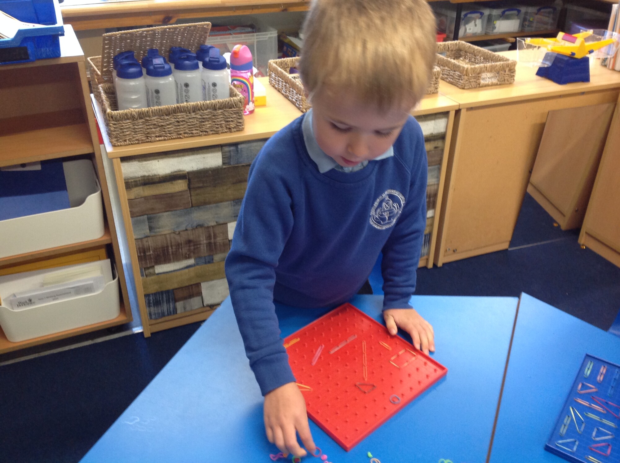 Have you ever had a loom band ‘ping’ out of your fingers? Well this week most of our EYFS Robins have experienced just that. Our fine motor activity this week involved stretching the loom band across the geoboard pegs. Most loom bands stayed on the board with only the odd one or two flying across the classroom (followed by lots of giggles).