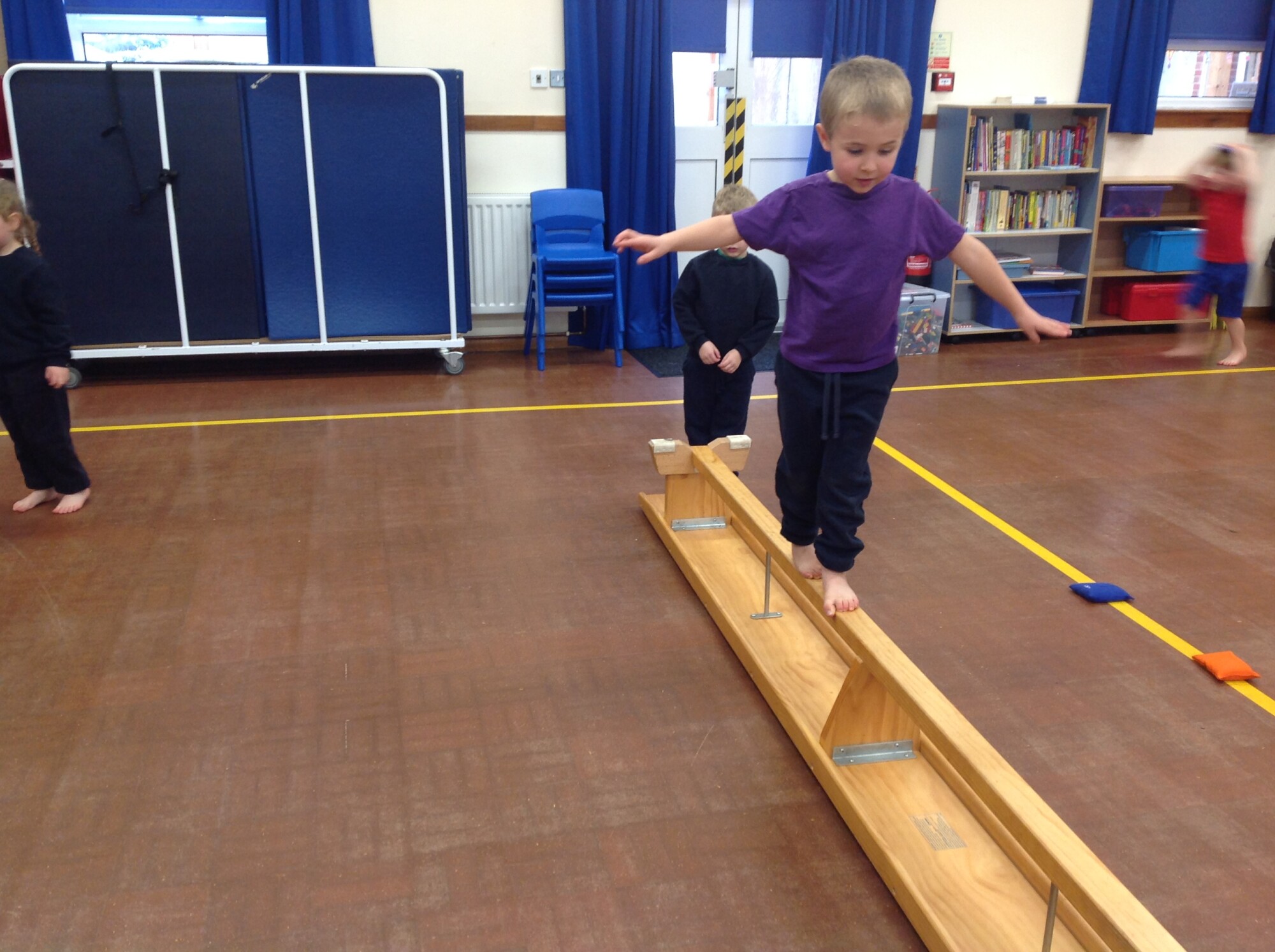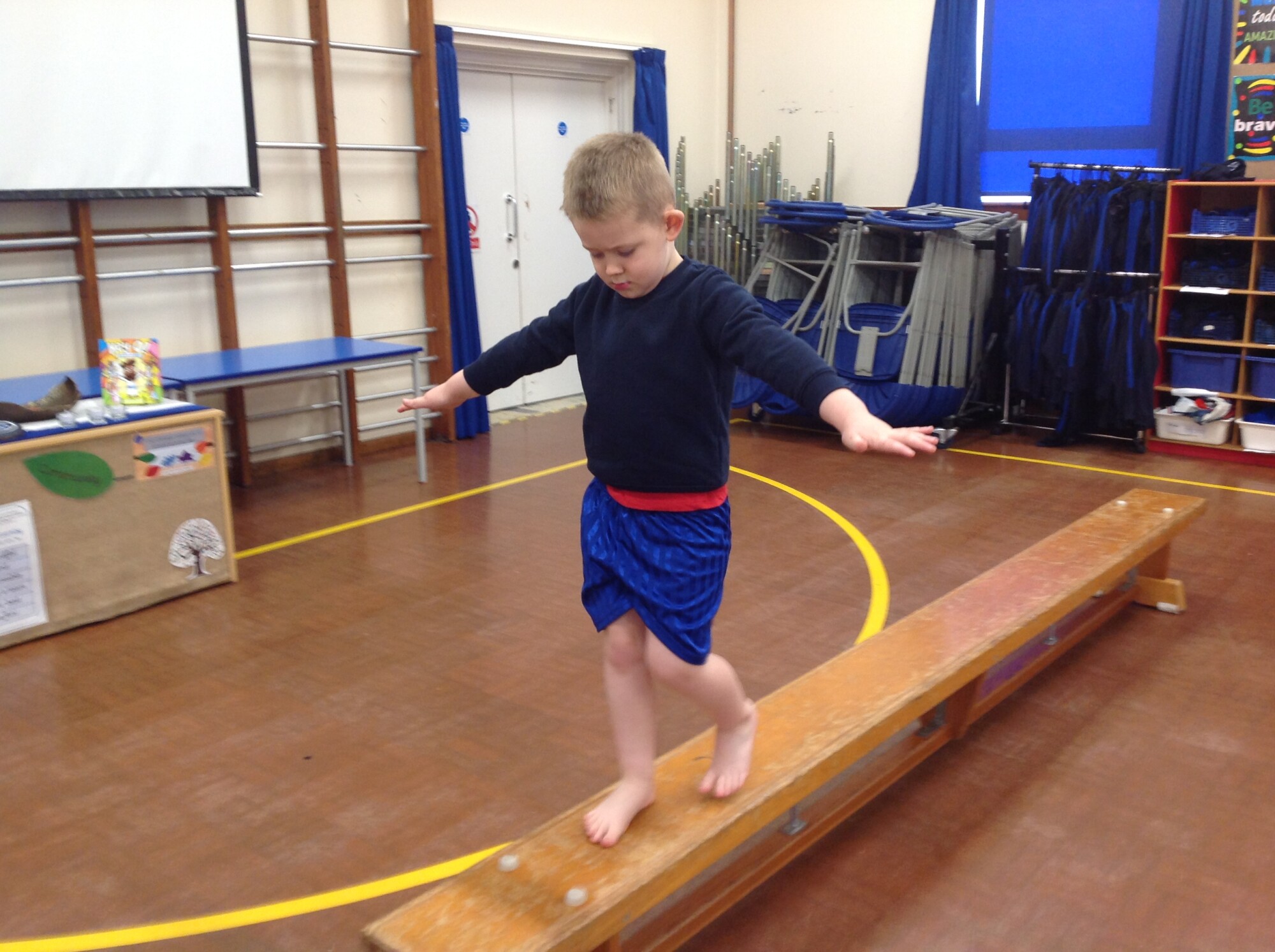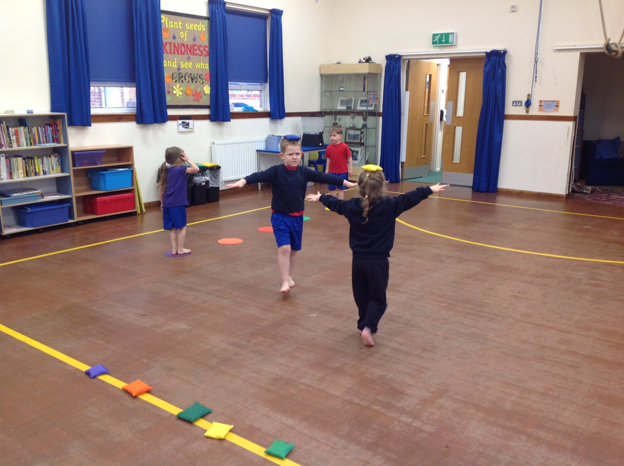 On Tuesday, PE was all about control too, balance and control. Even before we arrived at the hall we had to balance a beanbag on our heads whilst walking to the hall. Everybody walked slowly, nobody talked because they were concentrating so much - I will have to use this trick again! The PE lesson itself was fantastic - we were at the circus. We were jumping from spot to spot, balancing beanbags and balancing along a bench.