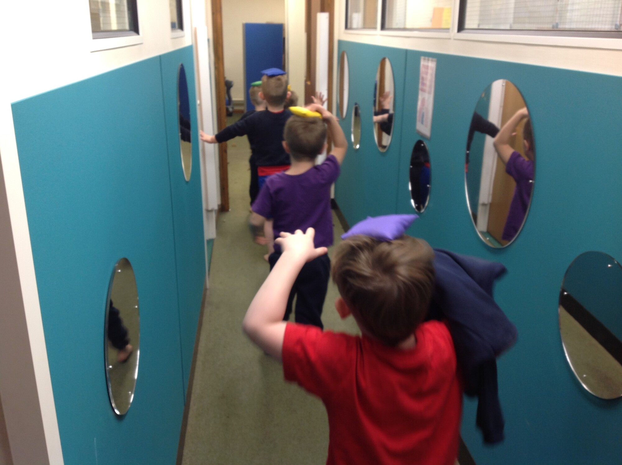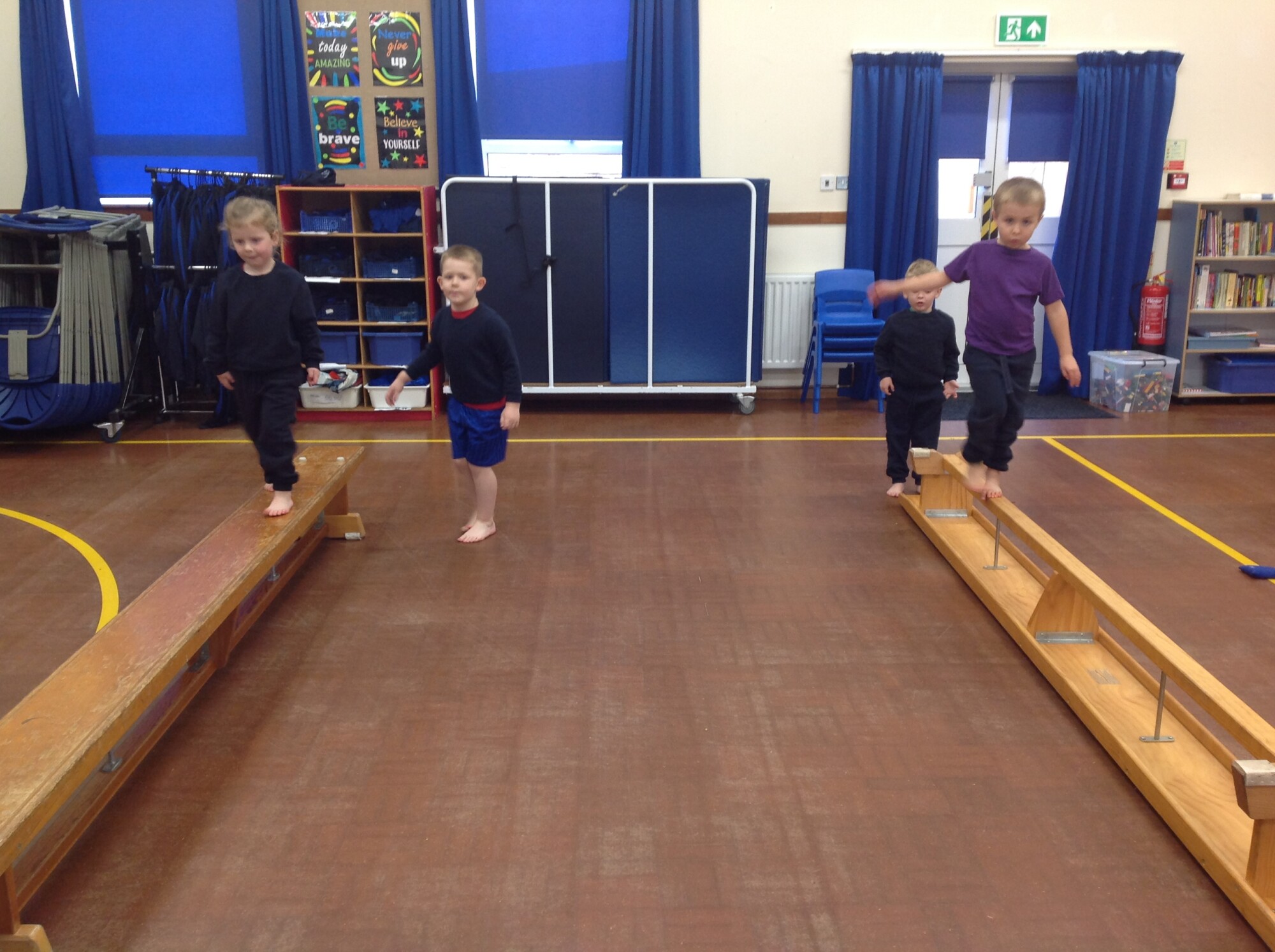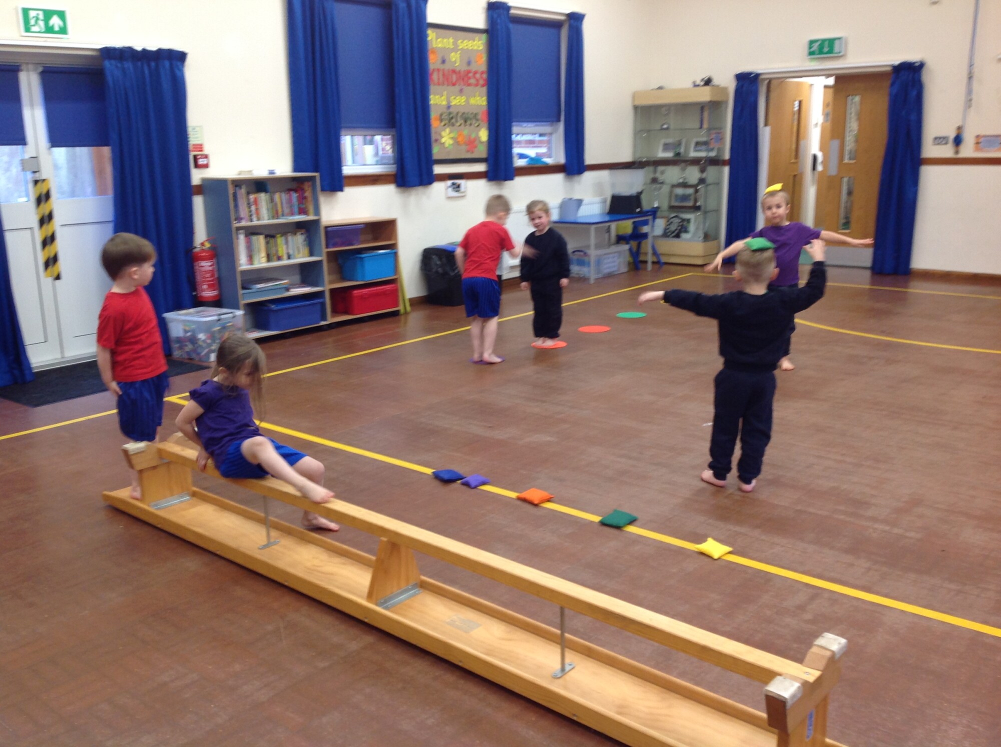 On Tuesday, PE was all about control too, balance and control. Even before we arrived at the hall we had to balance a beanbag on our heads whilst walking to the hall. Everybody walked slowly, nobody talked because they were concentrating so much - I will have to use this trick again! The PE lesson itself was fantastic - we were at the circus. We were jumping from spot to spot, balancing beanbags and balancing along a bench.