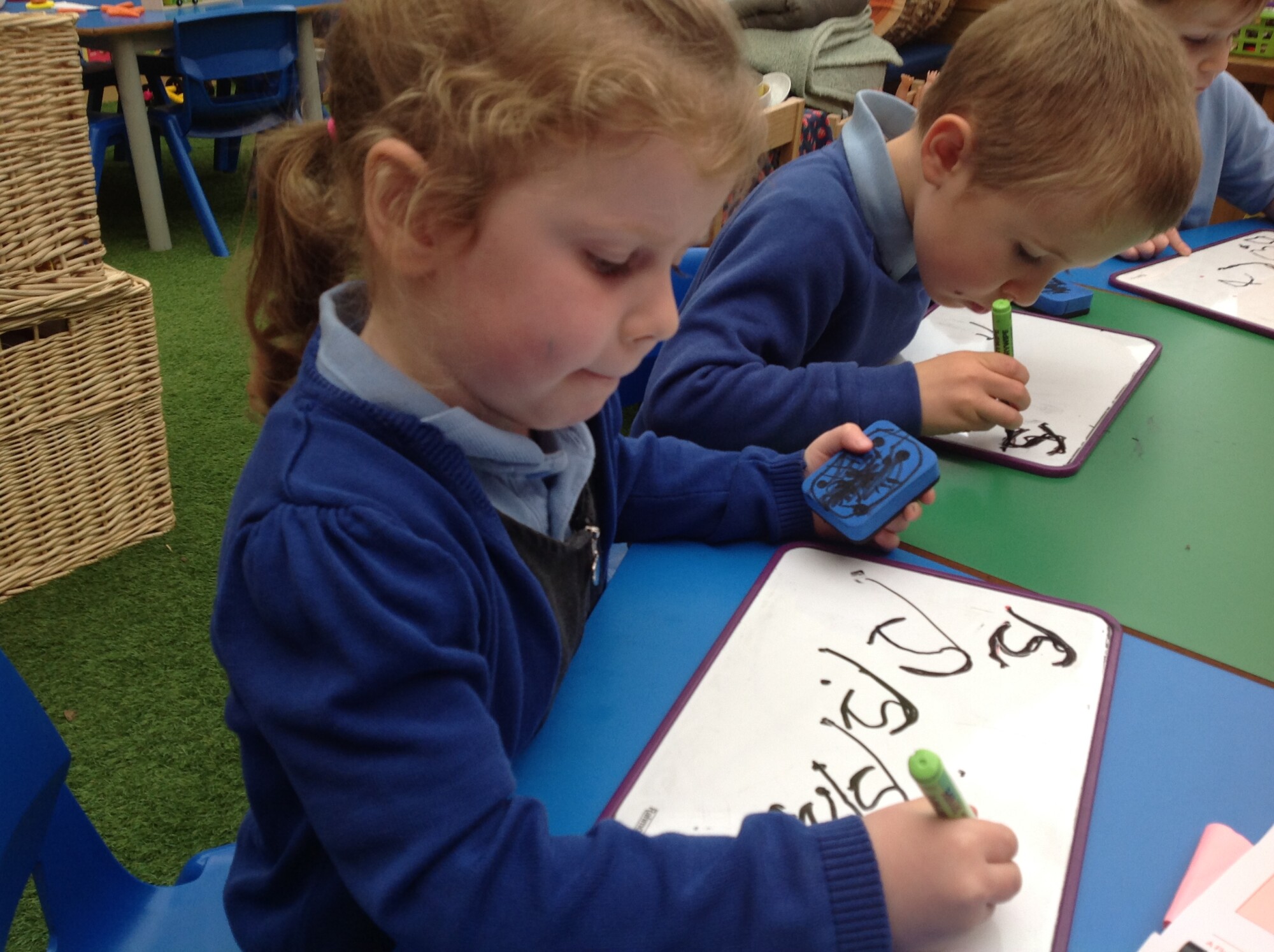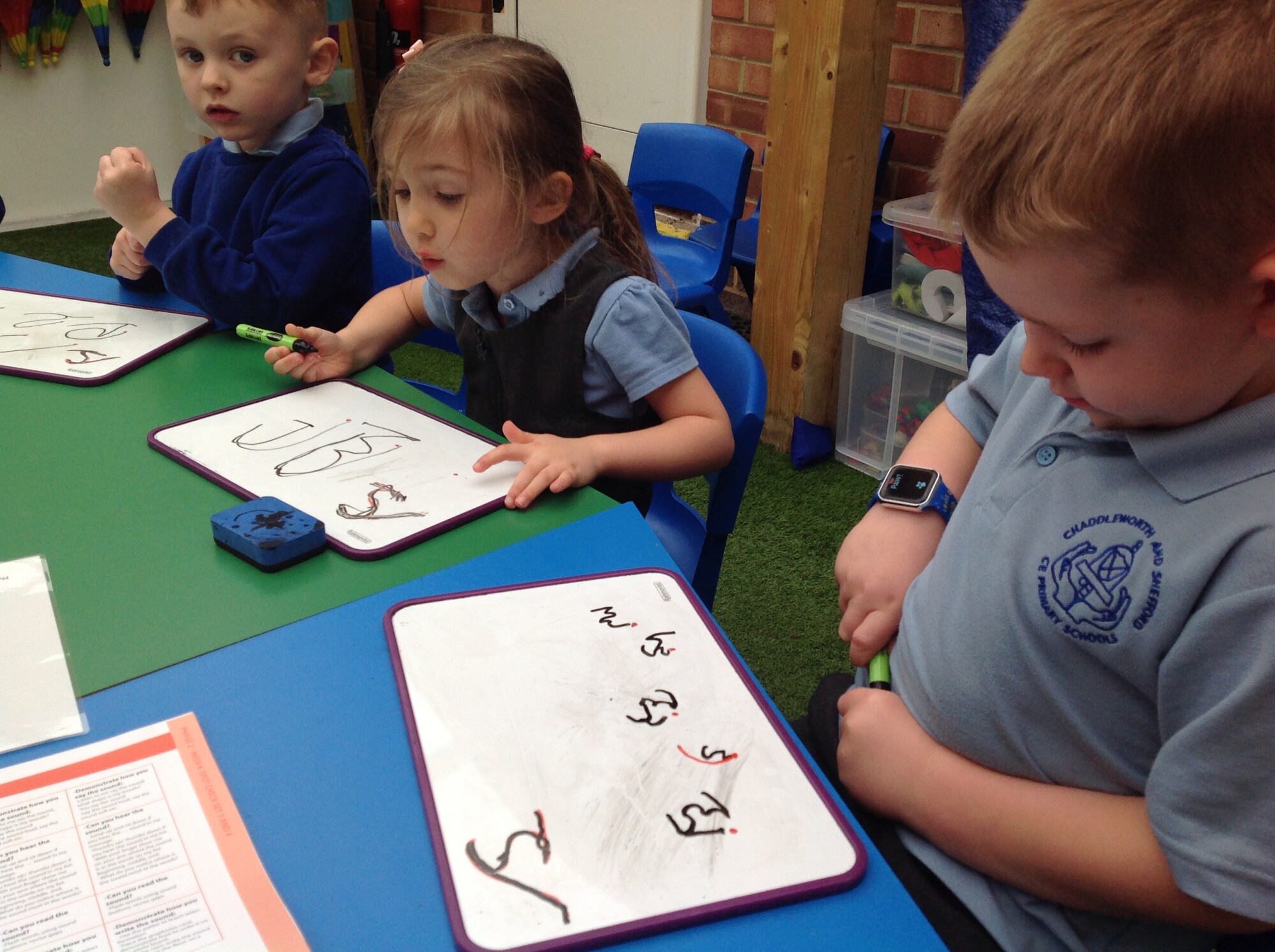 In Phonics. we were recapping our Phase 2 sounds and learning how to form these letters using the cursive script.