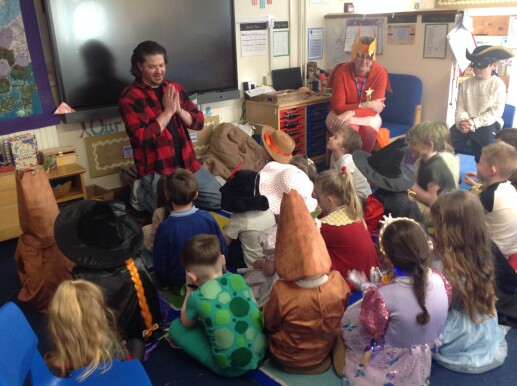 The day started with a whole school worship where the children discovered that World Book Day is celebrated across the world. The entries to the "book in a jar" competition were on show and there was real excitement about what the day would hold. Following the worship the children were able to vote for their favourite "book in a jar". This was when they also met a real author. They met Leon Mitchell, the author of "Felicity Fire". In the afternoon the children met Leon again for some storytelling. He helped the children to orally make up a class story. The children had lots of wonderful ideas.