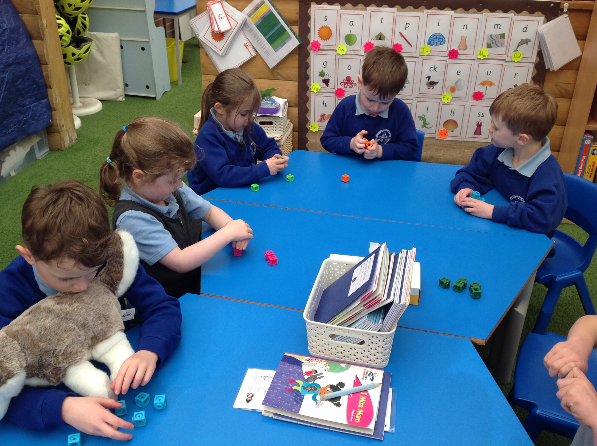 In Maths this week we were 'taking 5 apart' and then putting in back together. We started off with a tower of 5 unifix cubes, we quickly discovered that we could take them apart and put them into groups e.g 4 and 1, 3 and 2, 5 and 0. However, we found that when we wanted to put them back together, we could only do it one way - back to a tower of 5. So, we brought in multilink - this was a game changer, we found so many ways of rearranging 5.