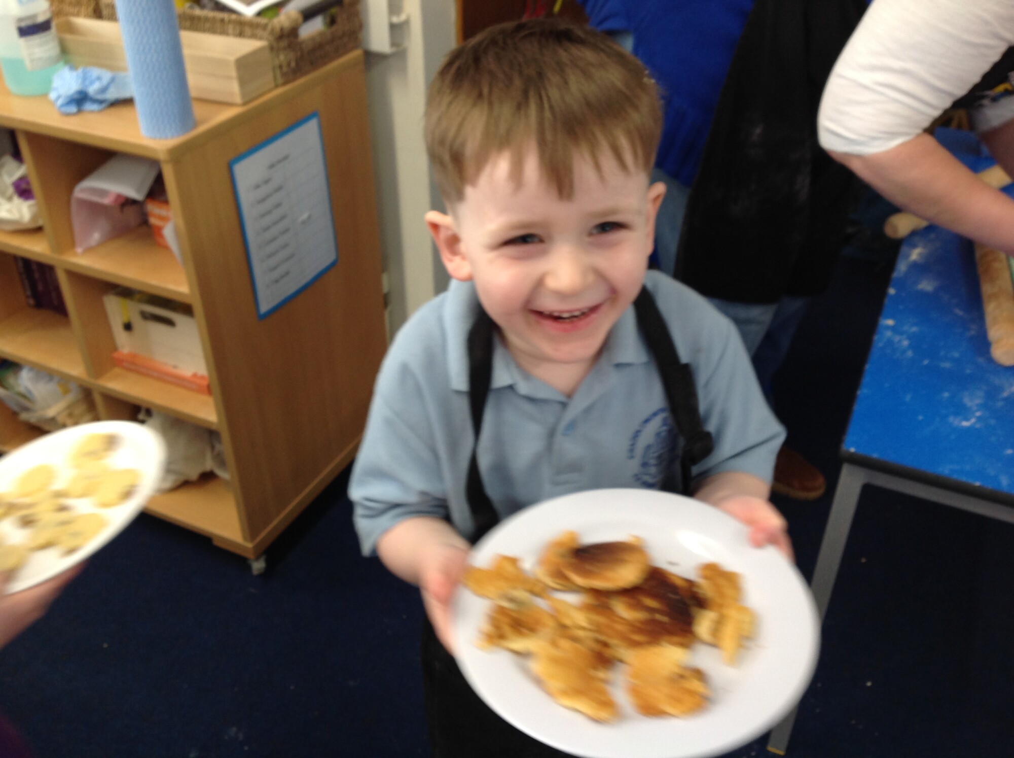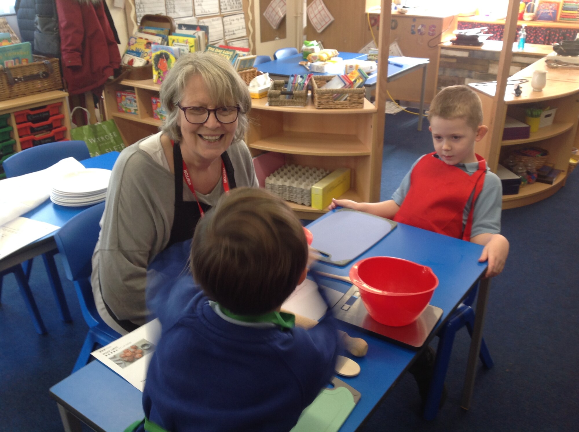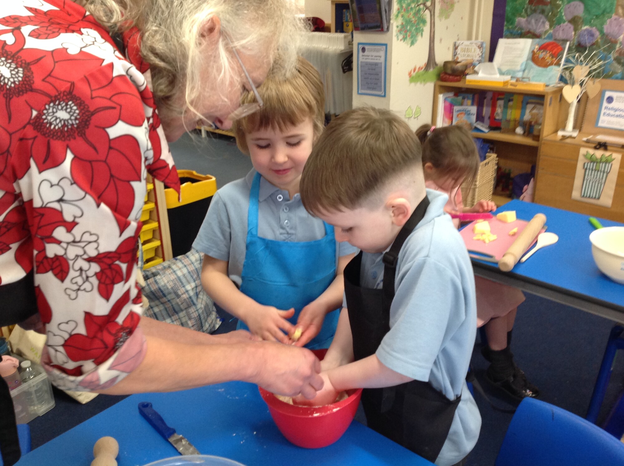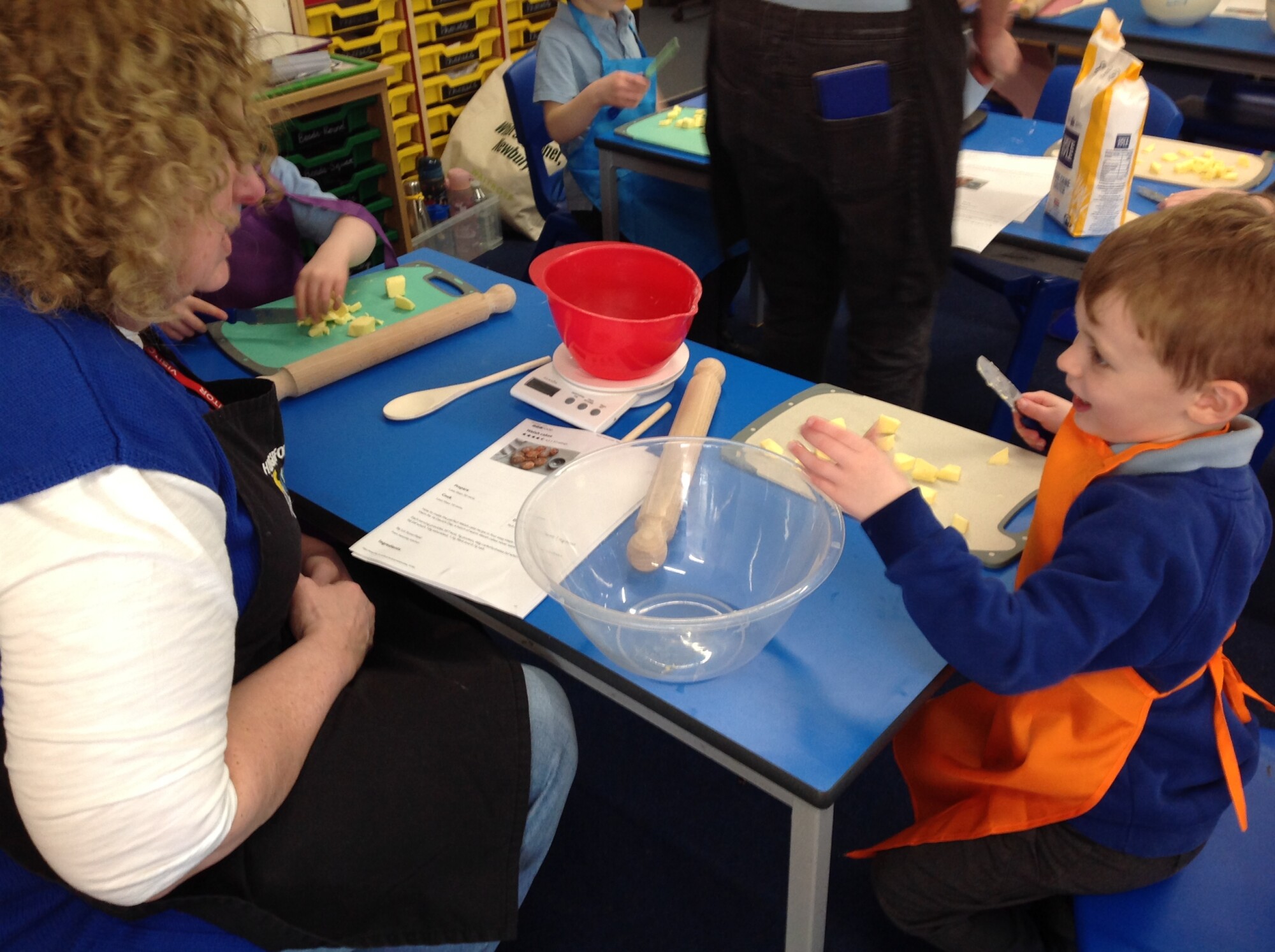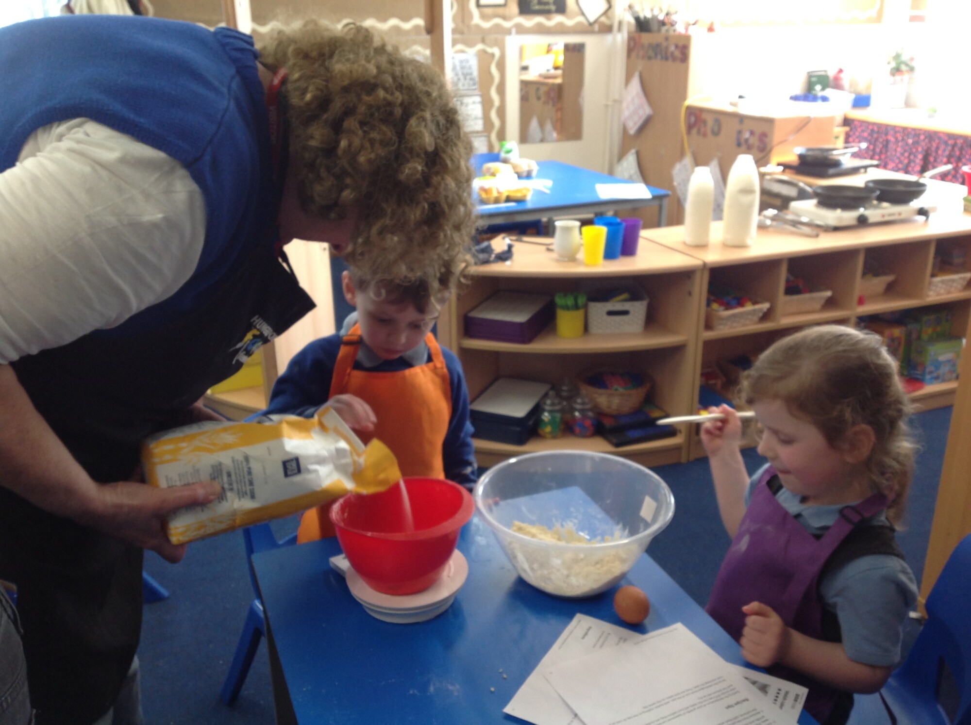 On Wednesday, we engaged in our usual phonics and Maths in the morning, so in the afternoon we were ready for some 'hand on learning'. Wednesday is our Pantomimus day and we were really looking forward to seeing Danielle the music teacher and heading into the hall for singing and dancing and all things music. Before that though, we welcomed Penny and her team from Hungerford Food Community who were helping us to make Welsh cakes. We were weighing, rubbing, cutting, mixing, rolling, squashing, cooking and the best part - eating! The photos tell it all (well not exactly all - they don't tell us about the wonderful small that filled the room and they don't tell us about the mess we left on the carpet - all for a very good cause though), the children were fully engaged - they were absolutely delightful and it was one of the best cooking afternoons we have had so far. Huge thank you to Penny and team for all their support - we can't wait to see you back soon when you bring the smoothie bike!