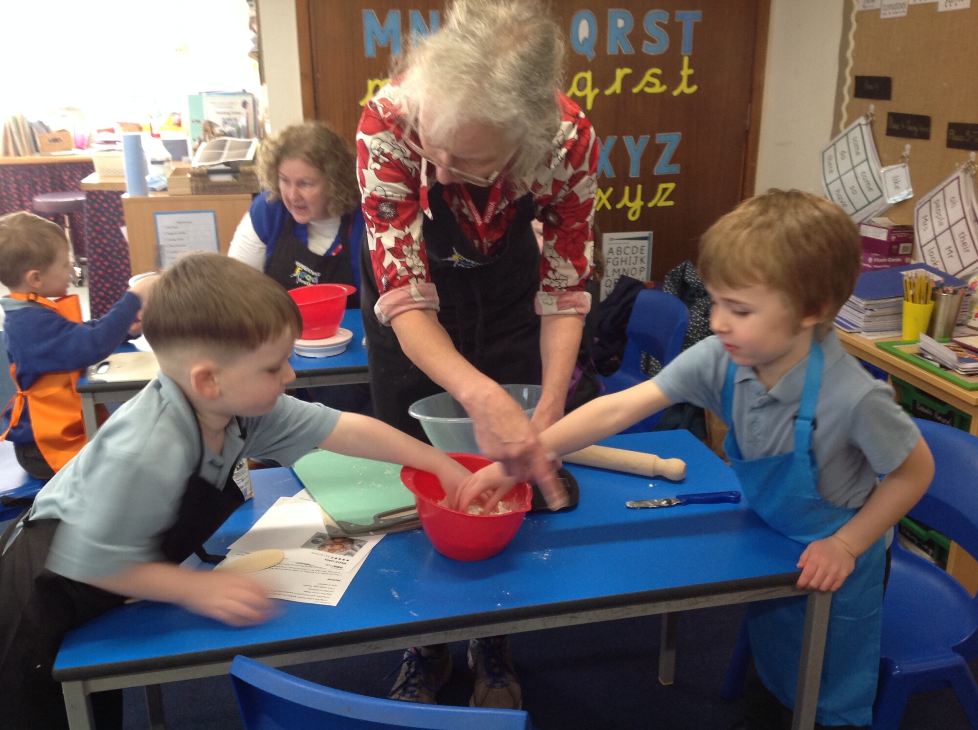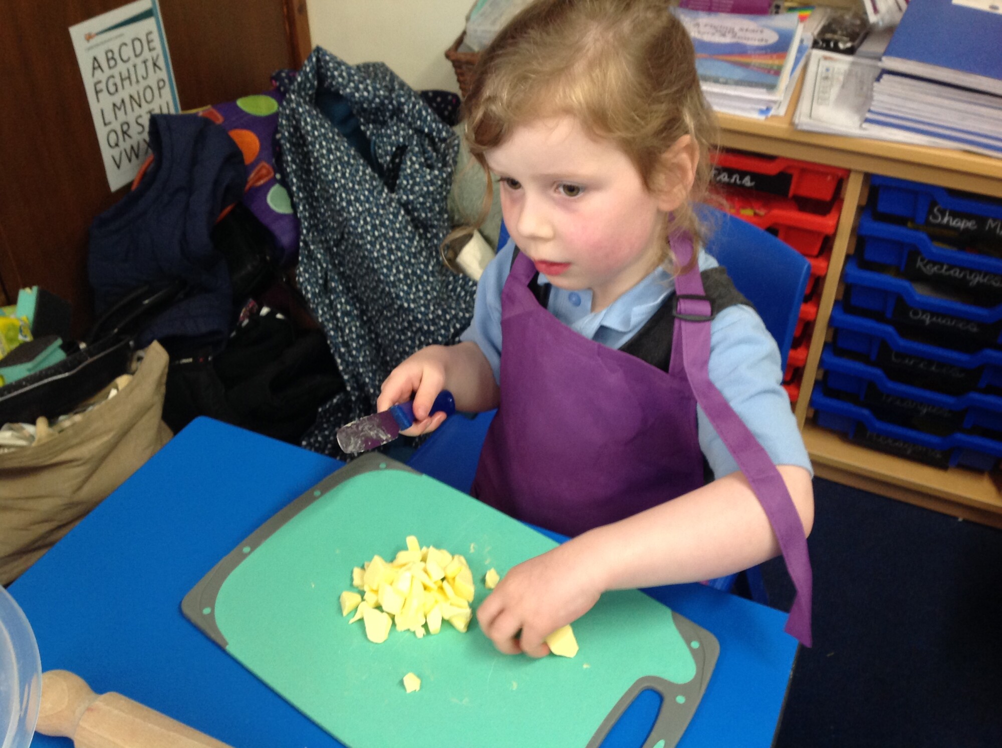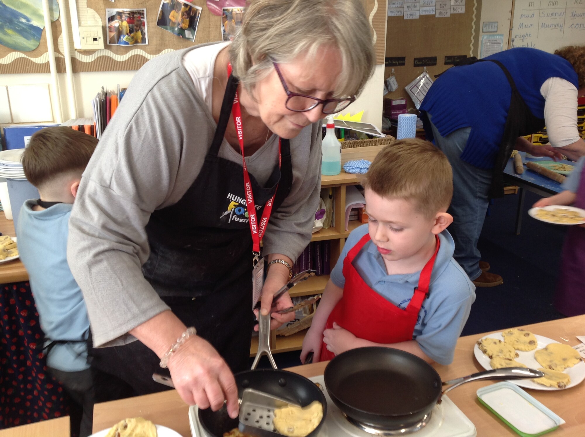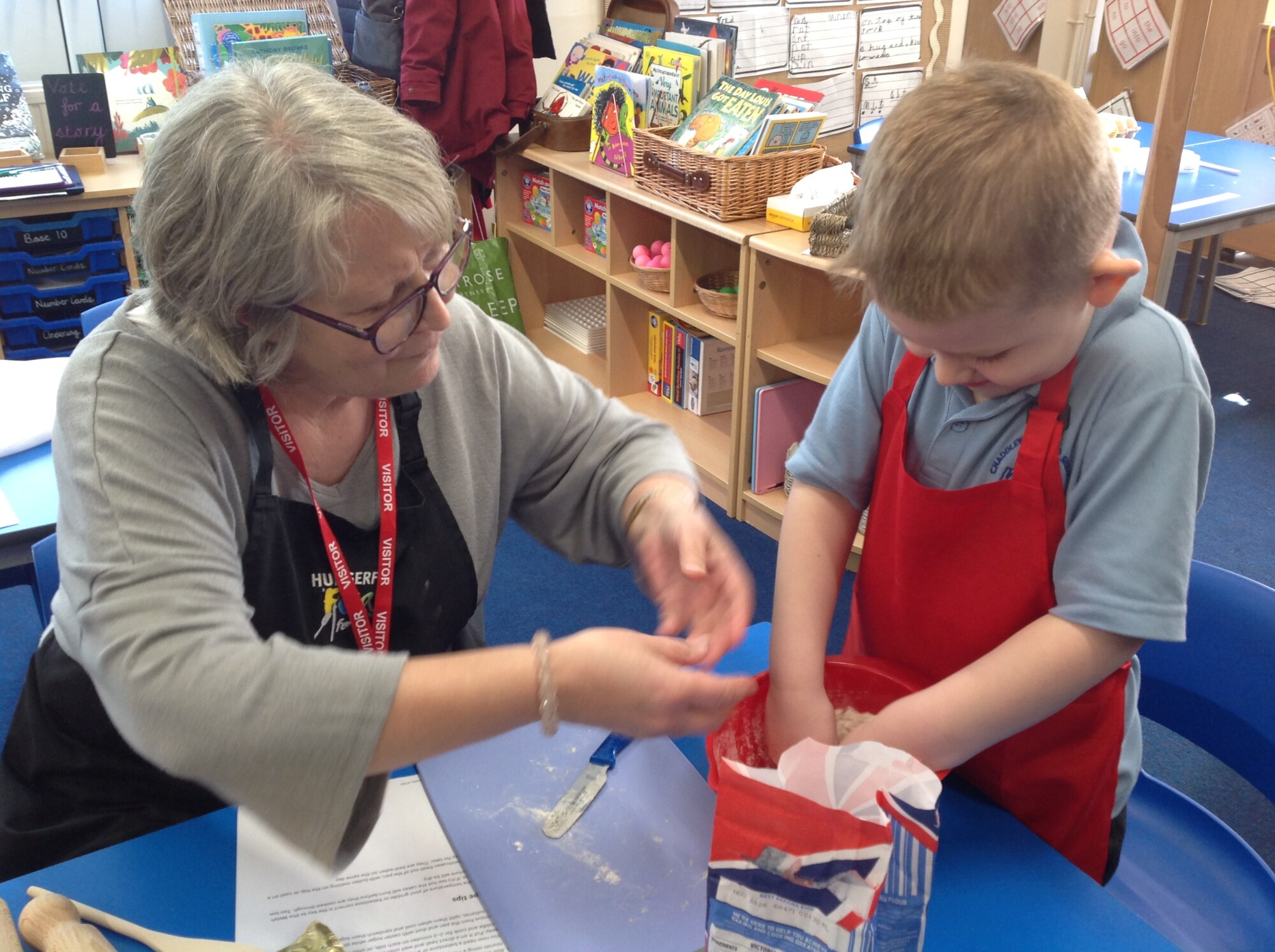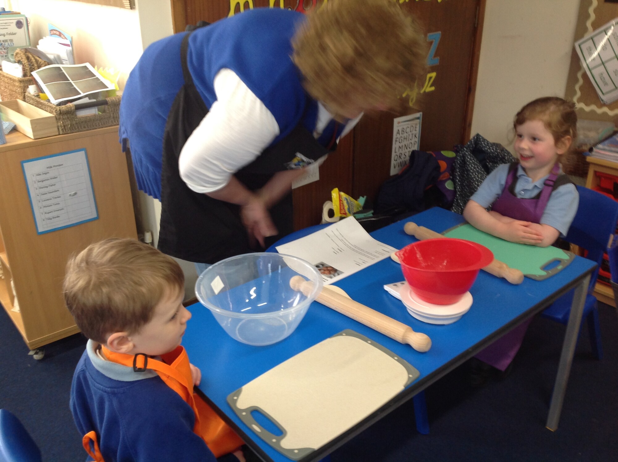 On Wednesday, we engaged in our usual phonics and Maths in the morning, so in the afternoon we were ready for some 'hand on learning'. Wednesday is our Pantomimus day and we were really looking forward to seeing Danielle the music teacher and heading into the hall for singing and dancing and all things music. Before that though, we welcomed Penny and her team from Hungerford Food Community who were helping us to make Welsh cakes. We were weighing, rubbing, cutting, mixing, rolling, squashing, cooking and the best part - eating! The photos tell it all (well not exactly all - they don't tell us about the wonderful small that filled the room and they don't tell us about the mess we left on the carpet - all for a very good cause though), the children were fully engaged - they were absolutely delightful and it was one of the best cooking afternoons we have had so far. Huge thank you to Penny and team for all their support - we can't wait to see you back soon when you bring the smoothie bike!