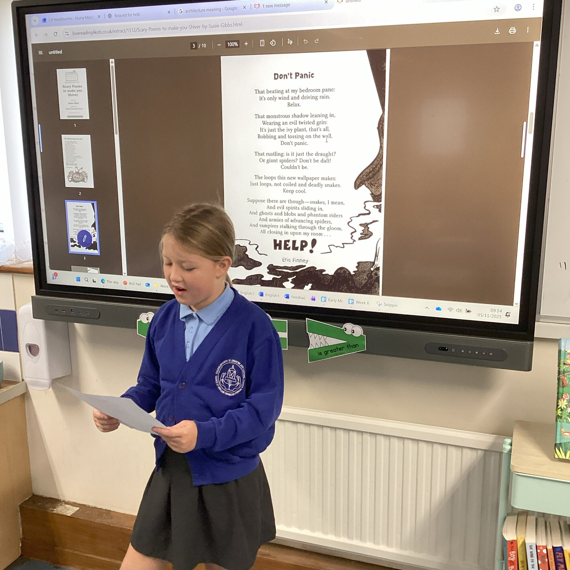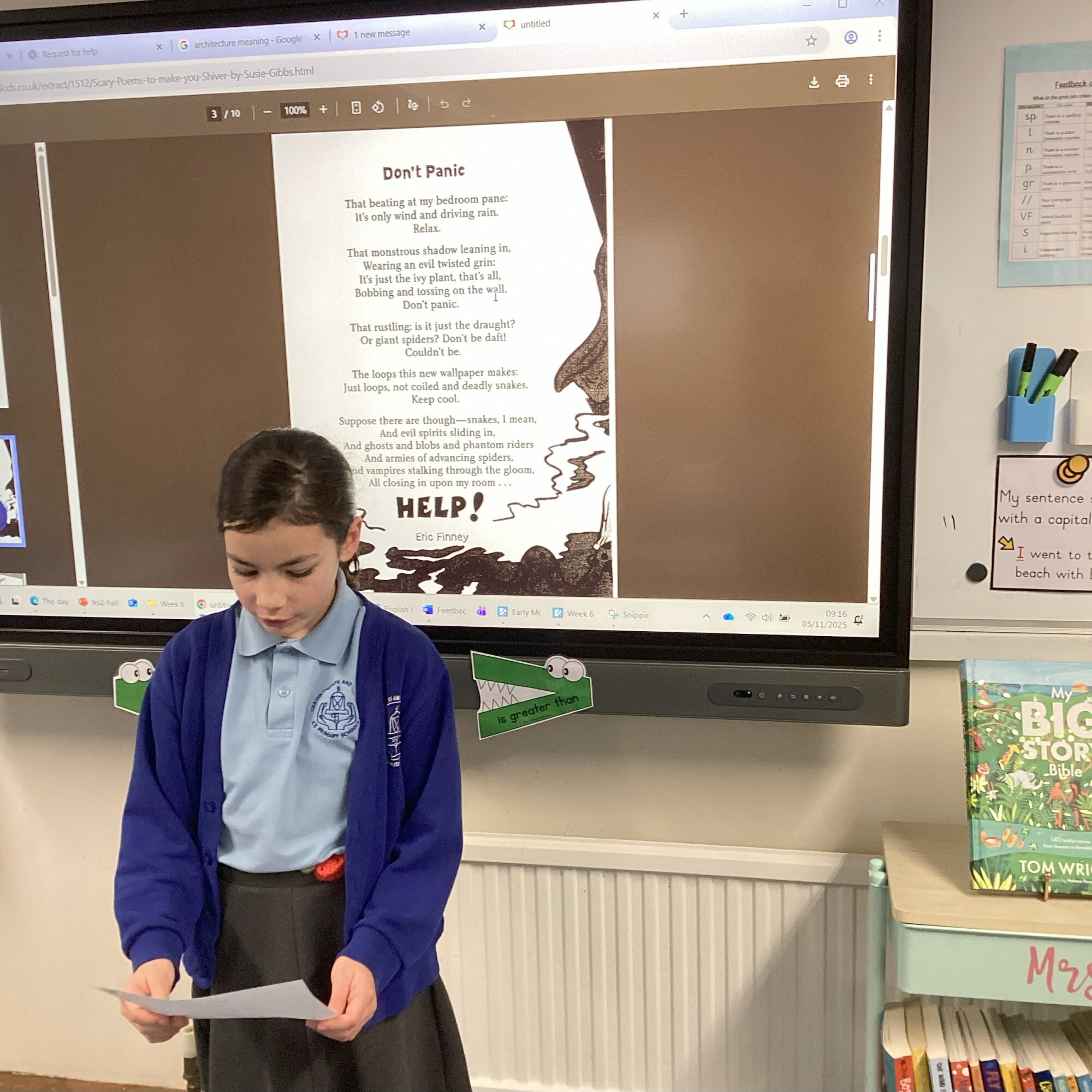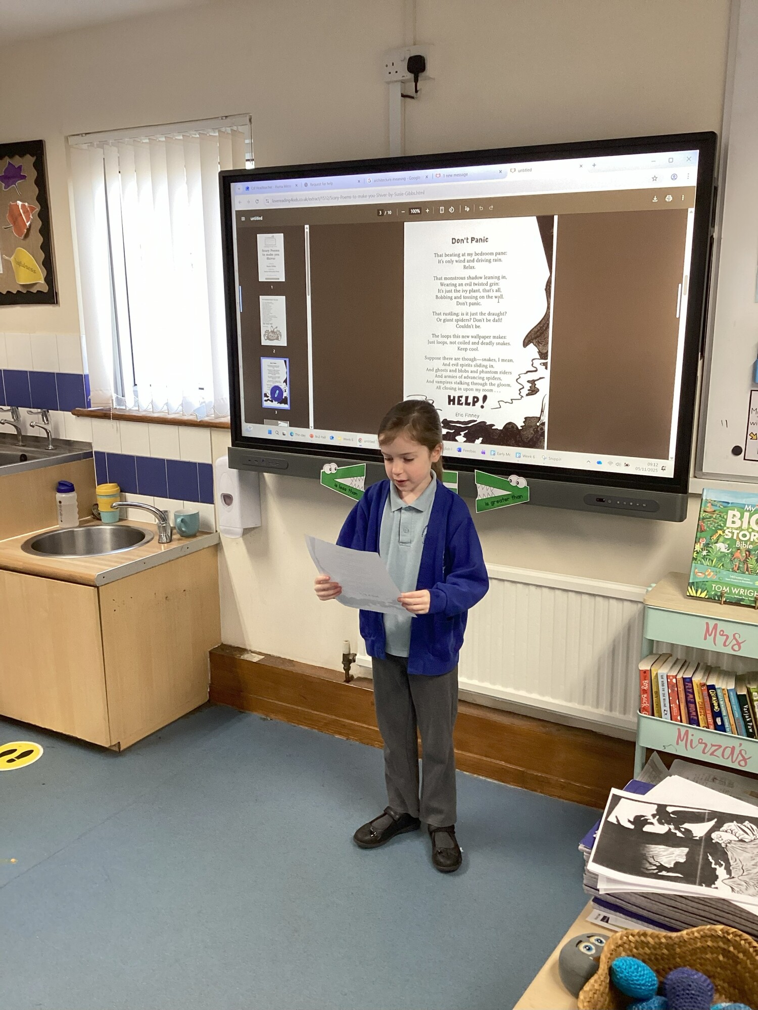 They particularly enjoyed performing the poem “Don’t Panic” using expression, rhythm and intonation. It was brilliant to see their confidence grow as they practised reading aloud to one another. Next time, we will focus on using even more expression and performance techniques, just like Michael Rosen does when he brings his poems to life.