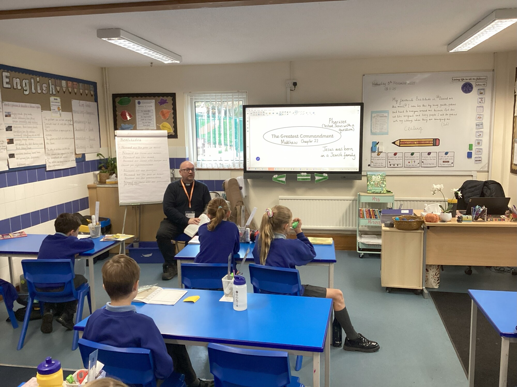 On Wednesday, Reverend Mike returned to spend the morning with Owls Class to lead a special RE lesson on 'The Greatest Commandments'. He shared readings from the Gospel of Matthew, where Jesus teaches that the most important commandments are to love God and to love your neighbour as yourself.