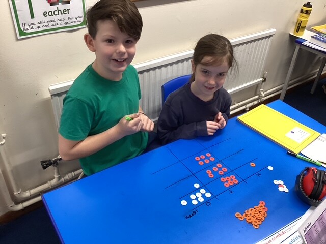 Once the children were confident with the practical side, we moved on to recording their thinking using written and formal methods in their books. The transition from concrete resources to formal calculations was smooth and purposeful, and the children showed growing confidence and accuracy as the week progressed. The photographs alongside this blog show this learning journey clearly, from practical exploration to structured written work.