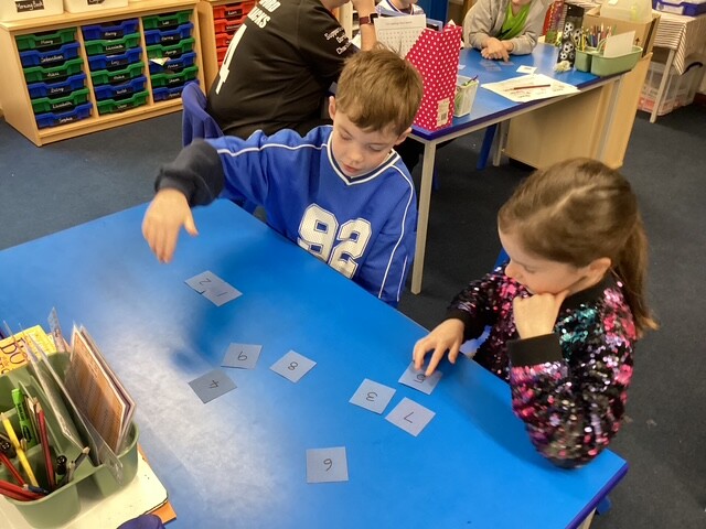 Our first activity introduced the children to the game Fifteen. Working in pairs, the children took turns choosing number cards and had to think carefully about how different combinations could be added together to make 15. What started as a simple game quickly turned into some impressive mathematical thinking. Children were predicting moves, spotting patterns, blocking their partner’s choices and explaining their reasoning using clear mathematical language. It was fantastic to see them so engaged, working collaboratively and really thinking like mathematicians.