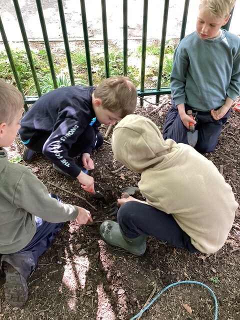 We started our week in the best possible way… outdoors at Forest School, and what a beautiful day it was. The sun was shining, the space was full of lush green leaves and the yellow flowers were in full bloom. It really felt like spring had arrived.