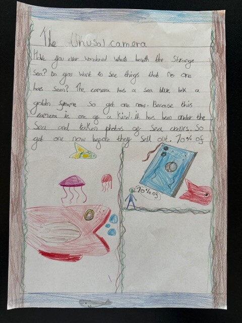 This week in English, we used Flotsam as our inspiration and the children took on the role of advertisers, trying to sell the mysterious camera found on the beach.