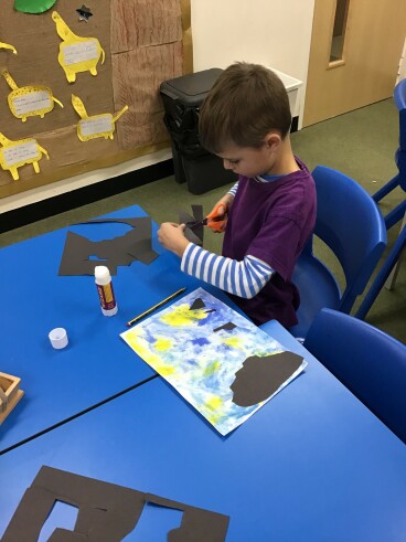 We have also finally finished our "Starry Night" pictures. They look lovely! This afternoon the children cut out different shapes to represent the buildings and trees in the picture. They then added them to their watercolour background. To finish off our art project, the children then evaluated their work, thinking about what they liked and what they could improve on.
