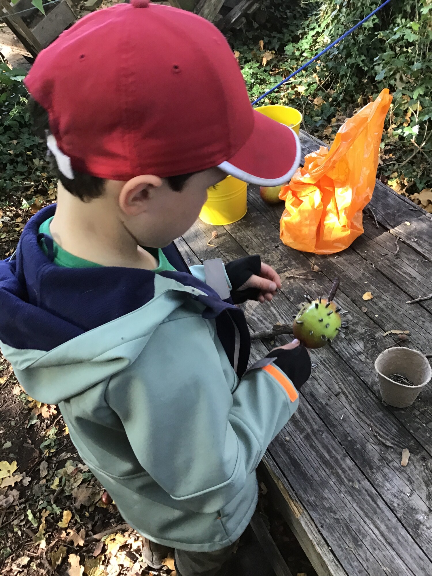 As always this term, we started the week with a fun filled session at forest school. The children had to find pretend spiders and their webs hanging in the trees, we made bird feeders from our last few apples from the apple tree, there was lots of balancing and as always, den making and lots of imaginative play!