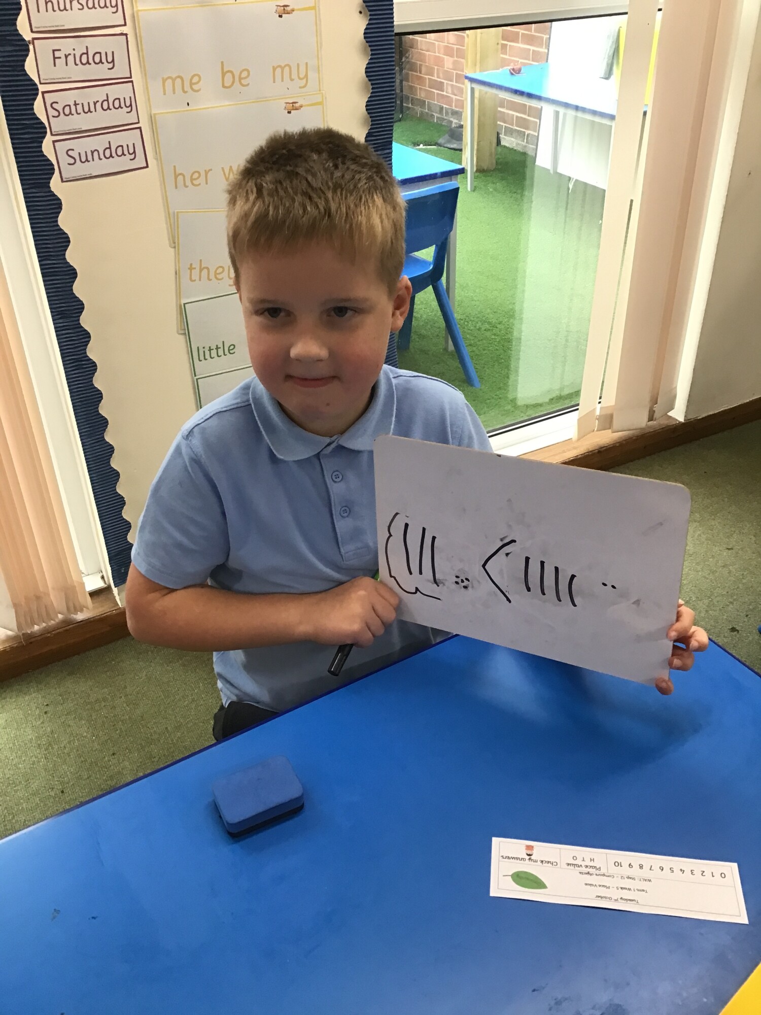 In maths, Year 1 and Year 2 have continued to think about place value. They have been thinking about bigger numbers, smaller numbers, more than, less than and we have even been introduced to the symbols for comparing numbers in Year 2. These are <, > and =. The picture below shows that thirty - five is less than forty - two, 35 < 42.