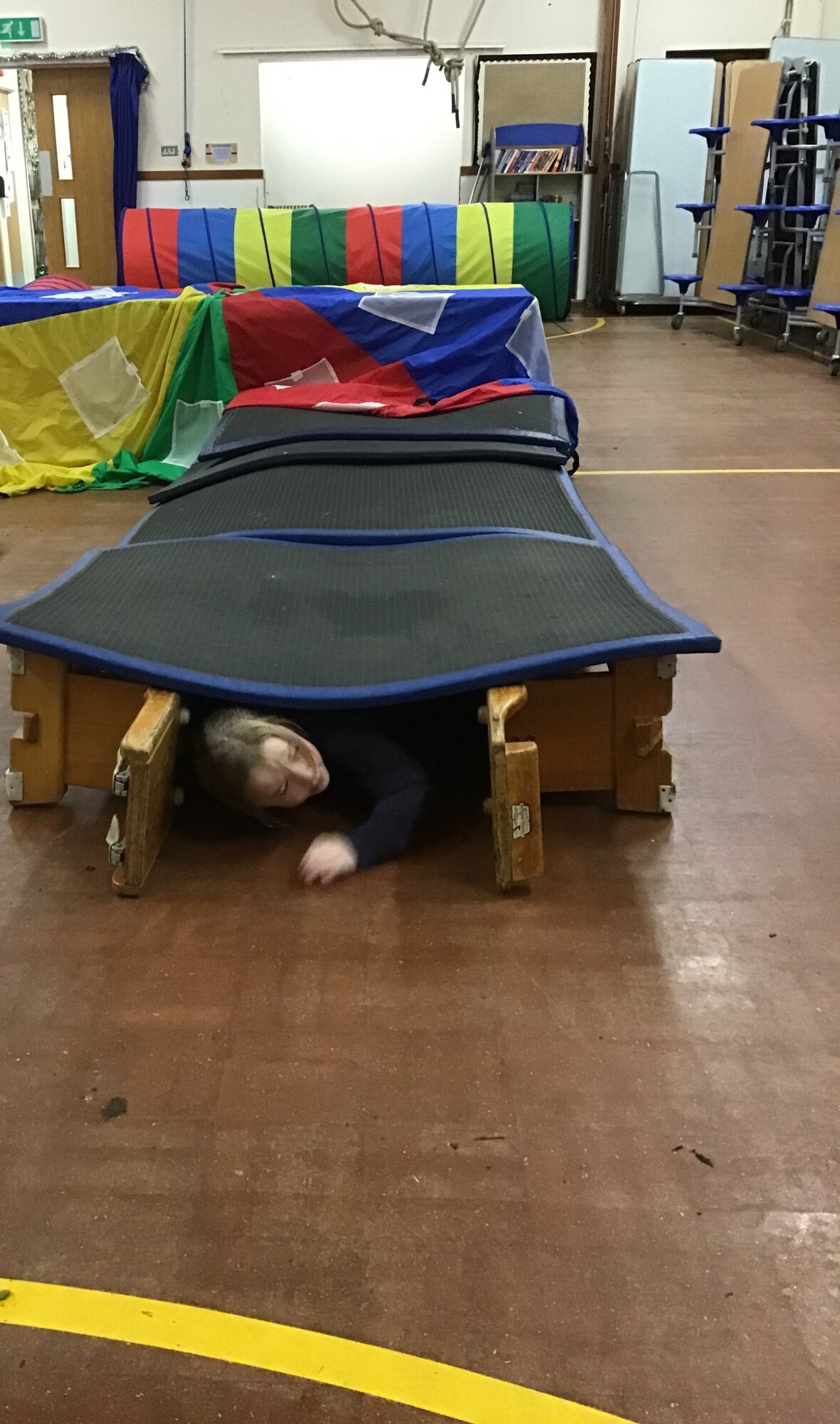 That's right, caving! In our P.E. lesson which we have been having on a Monday with the specialist sports teacher from Park House, there were lots of tunnels for the children to move through. They started off with the tunnels separate. The children had to move through the tunnels in different ways - crawling, sliding on their back , sliding on their tummy etc. Some tunnels were wide and some were very narrow! Once the children had mastered this, all the tunnels were put together to make one long tunnel. The children had to work together in teams to get through this. We saw some super teamwork!