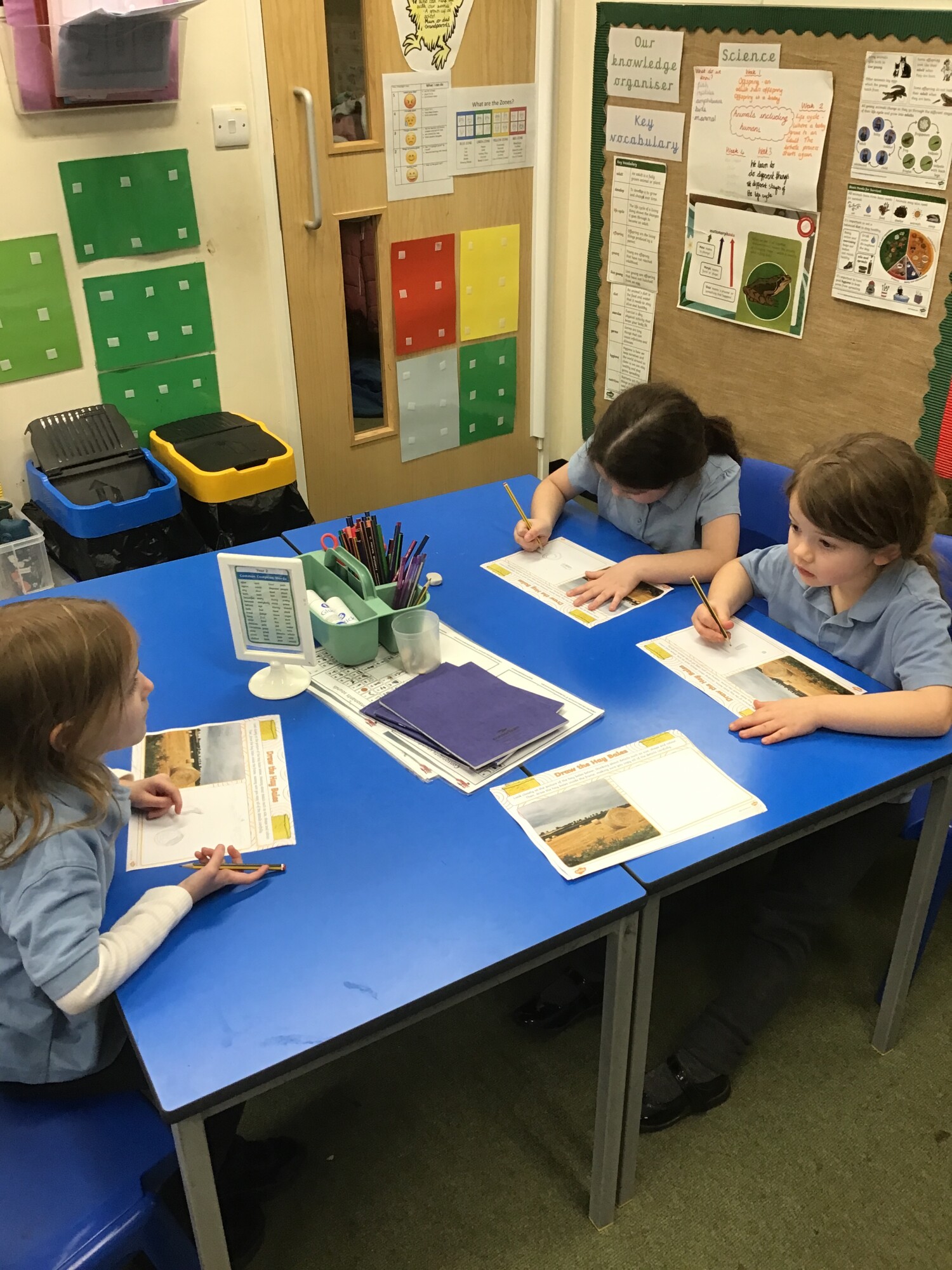 In science, Year 1 and Year 2 have found out that animals, including humans need lots of things to survive. The most important are AIR, FOOD and WATER. We need other things as well such as shelter, sleep and exercise. However, we can live for a while without certain things but we can't live for long if we don't have air, water or food. The children used an online digital book to help them find this out.
