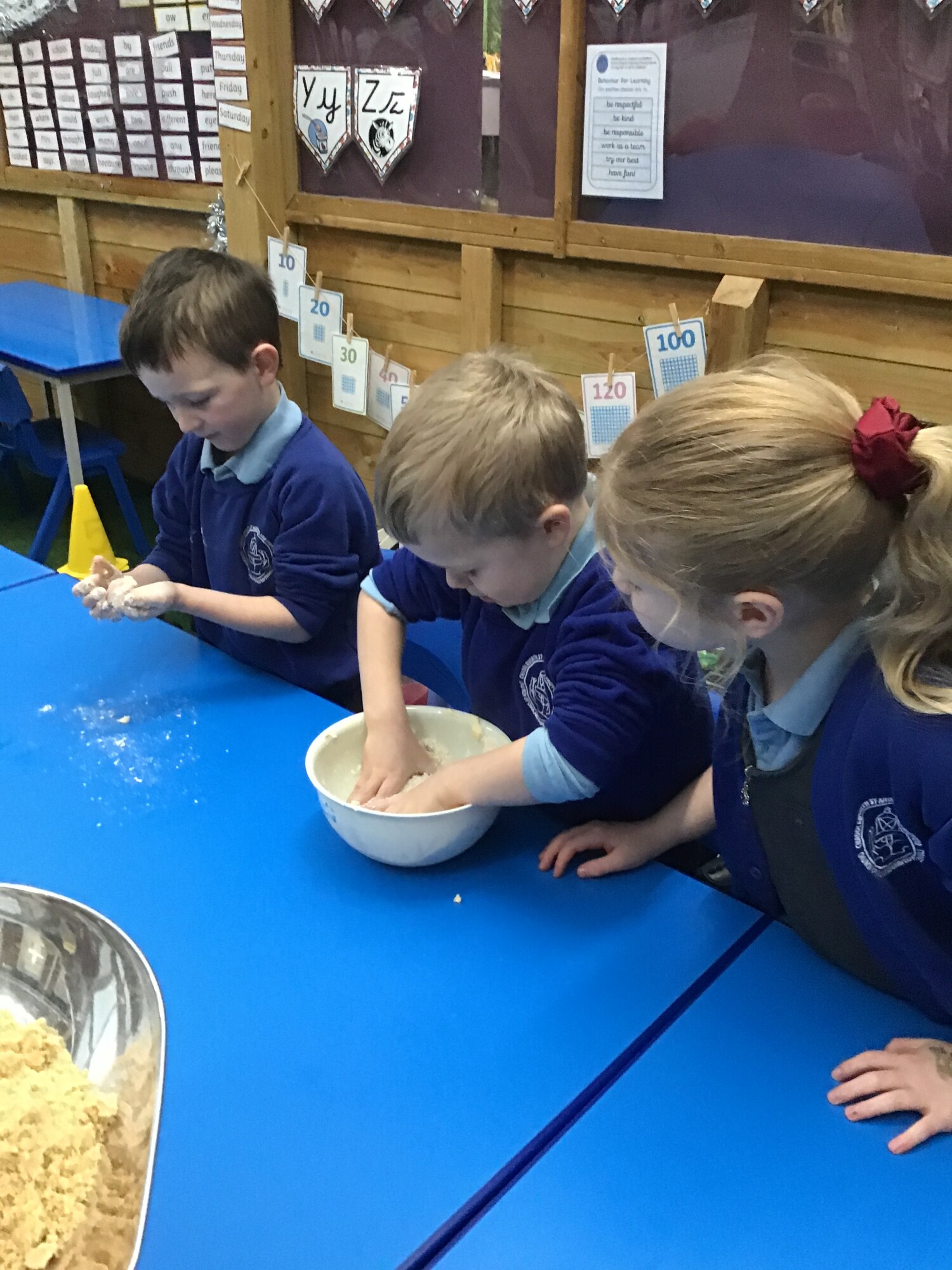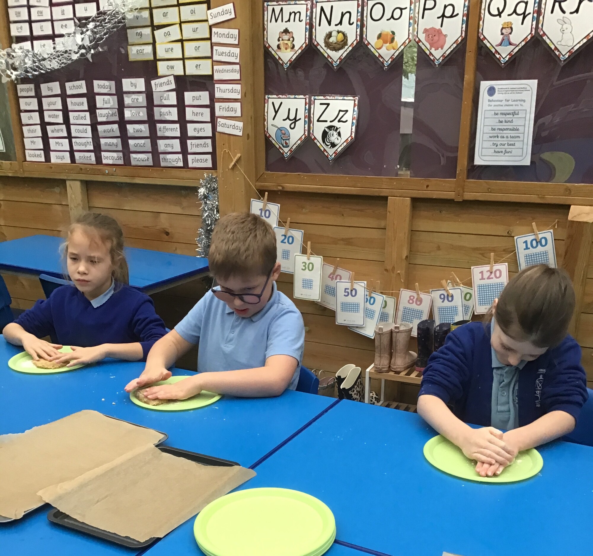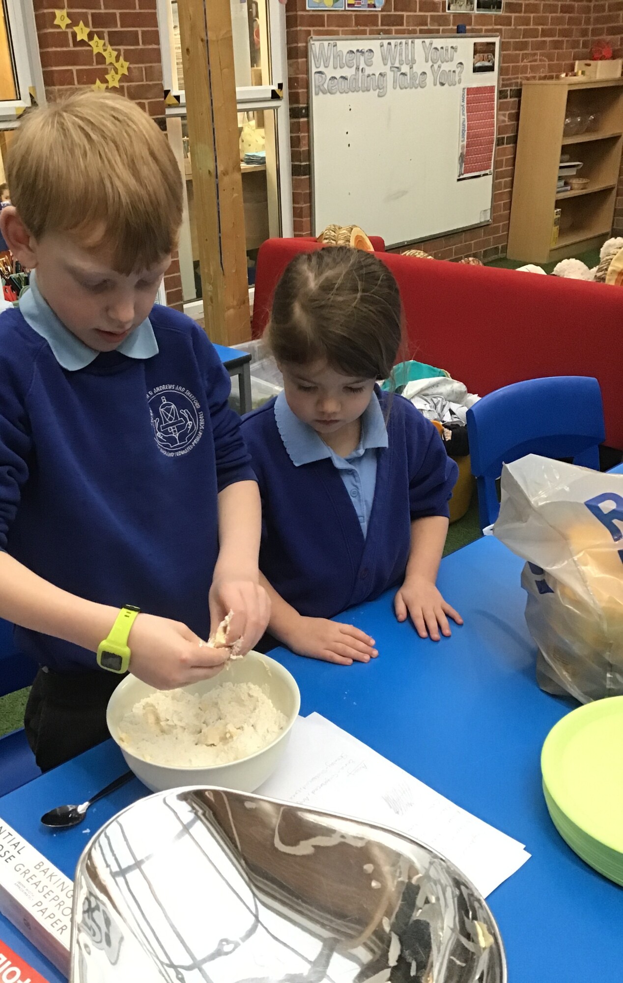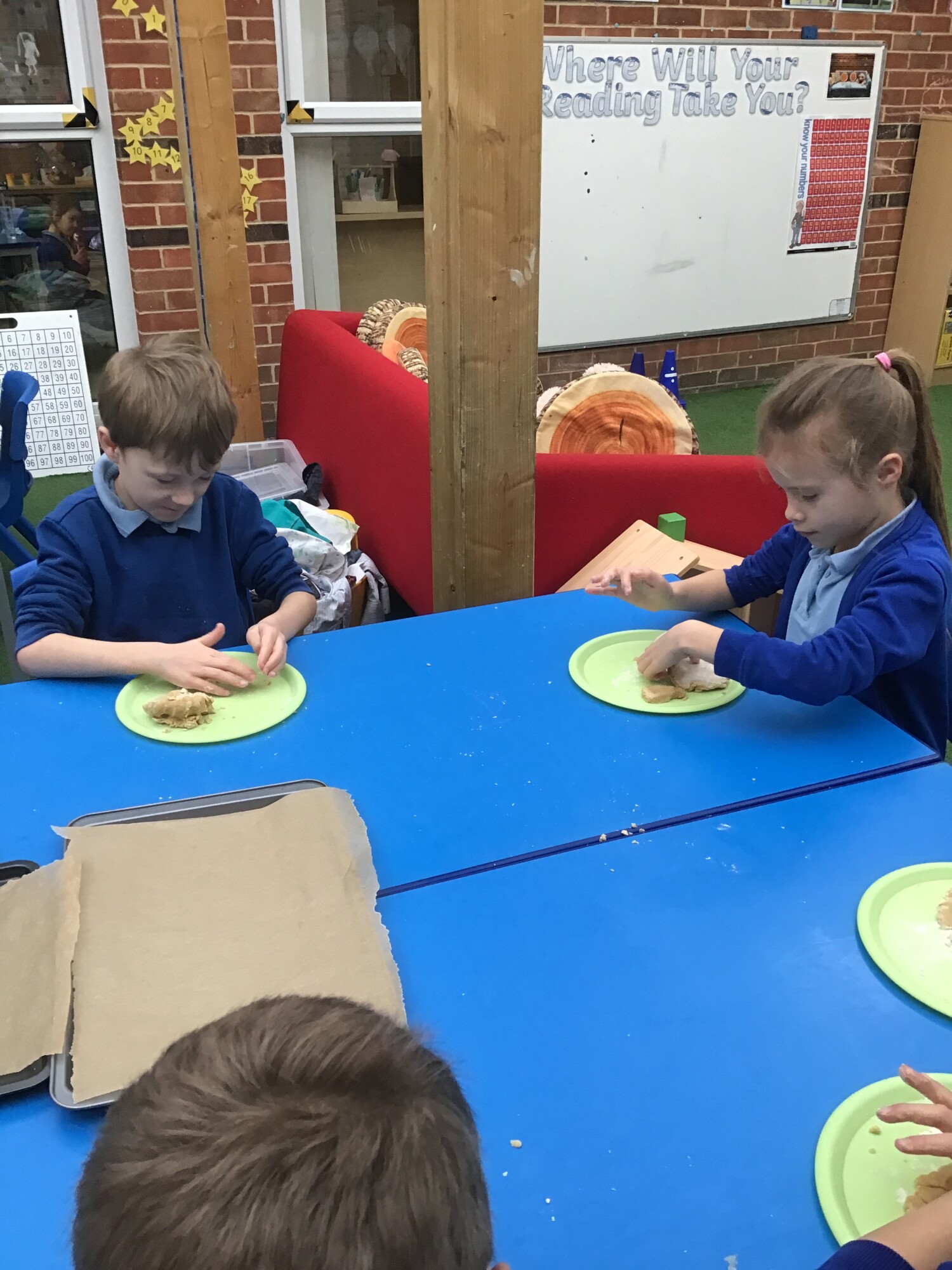 On Tuesday the children all made their biscuits that they had designed. They had chosen to either make a ginger biscuit or a shortbread biscuit. The children enjoyed kneading the dough, patting the dough and cutting their shapes out. However, the highlight was probably eating their biscuit after lunch! The children then evaluated their biscuits and thought about if they made them again, and had the time to decorate them, how would they decorate them?