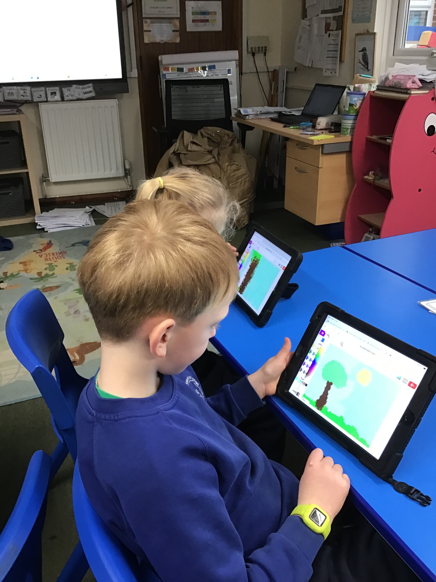 In computing the children have been creating digital art by using the programme "2 paint a picture" on Purple Mash. They have painted pictures by making the colours lighter or darker by changing the amount of "water" used when creating the colour needed. They have been painting in an "impressionist" style. This is a style that is light and colourful and uses short, quick brushstrokes. Instead of the children having to paint lots of little brush strokes the painting programme creates several brush strokes at a time for them.