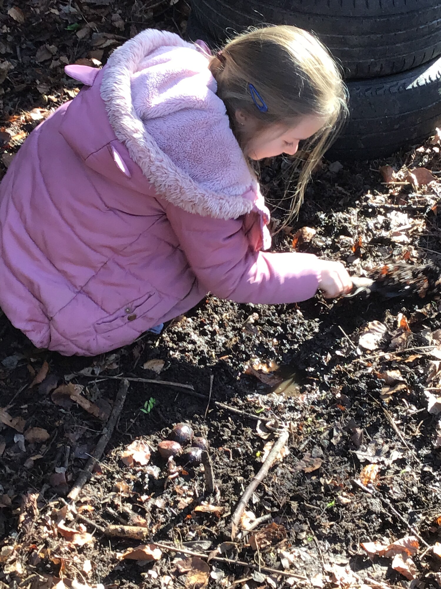 Monday started with a beautiful afternoon in forest school. Spring was in the air and the sun was shining. The children had great fun playing in the pond, making wands, building nests for birds, making swings and digging for worms! Great fun was had by all!