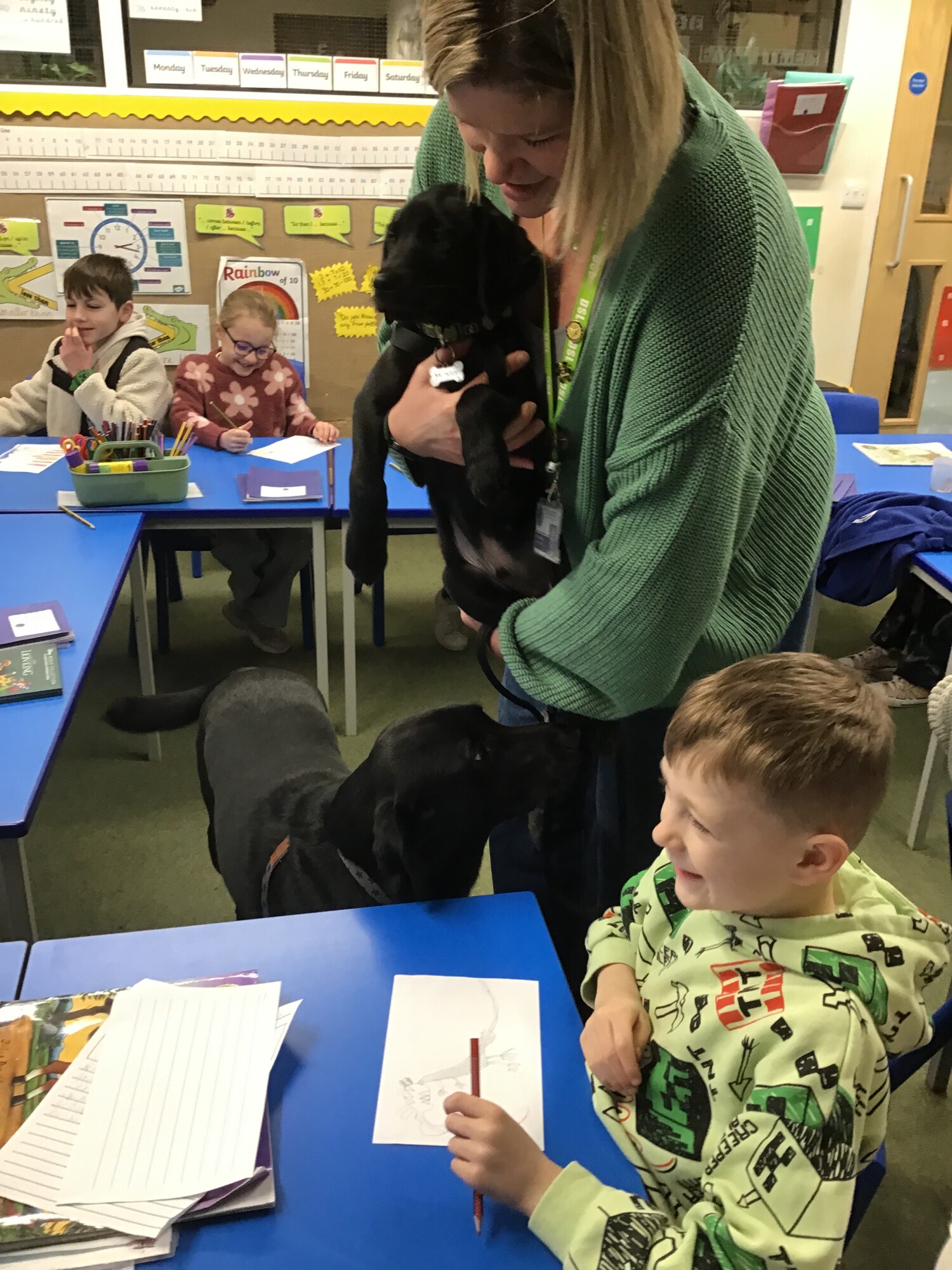He was a beautiful puppy version of Rascal and Rascal was keen to stay right by his side the whole time! He even kept close by when Storm came to see us in our classroom!