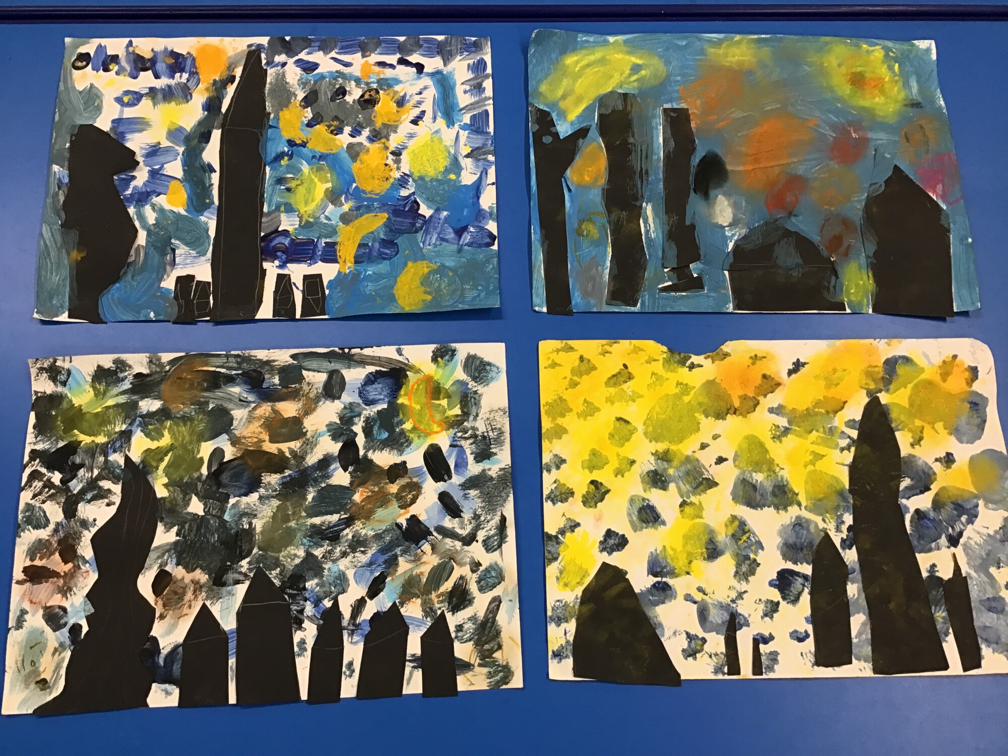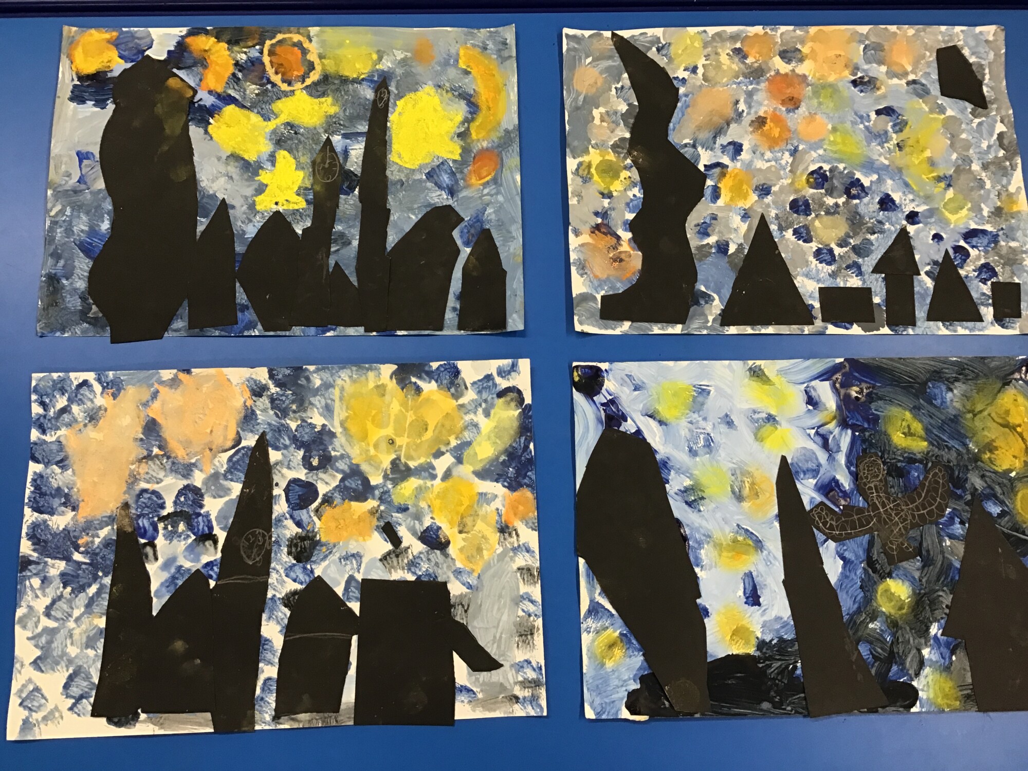 This week we have finally completed our own versions of "Starry Night" by Vincent Van Gogh. We think you will all agree, the pictures look amazing!