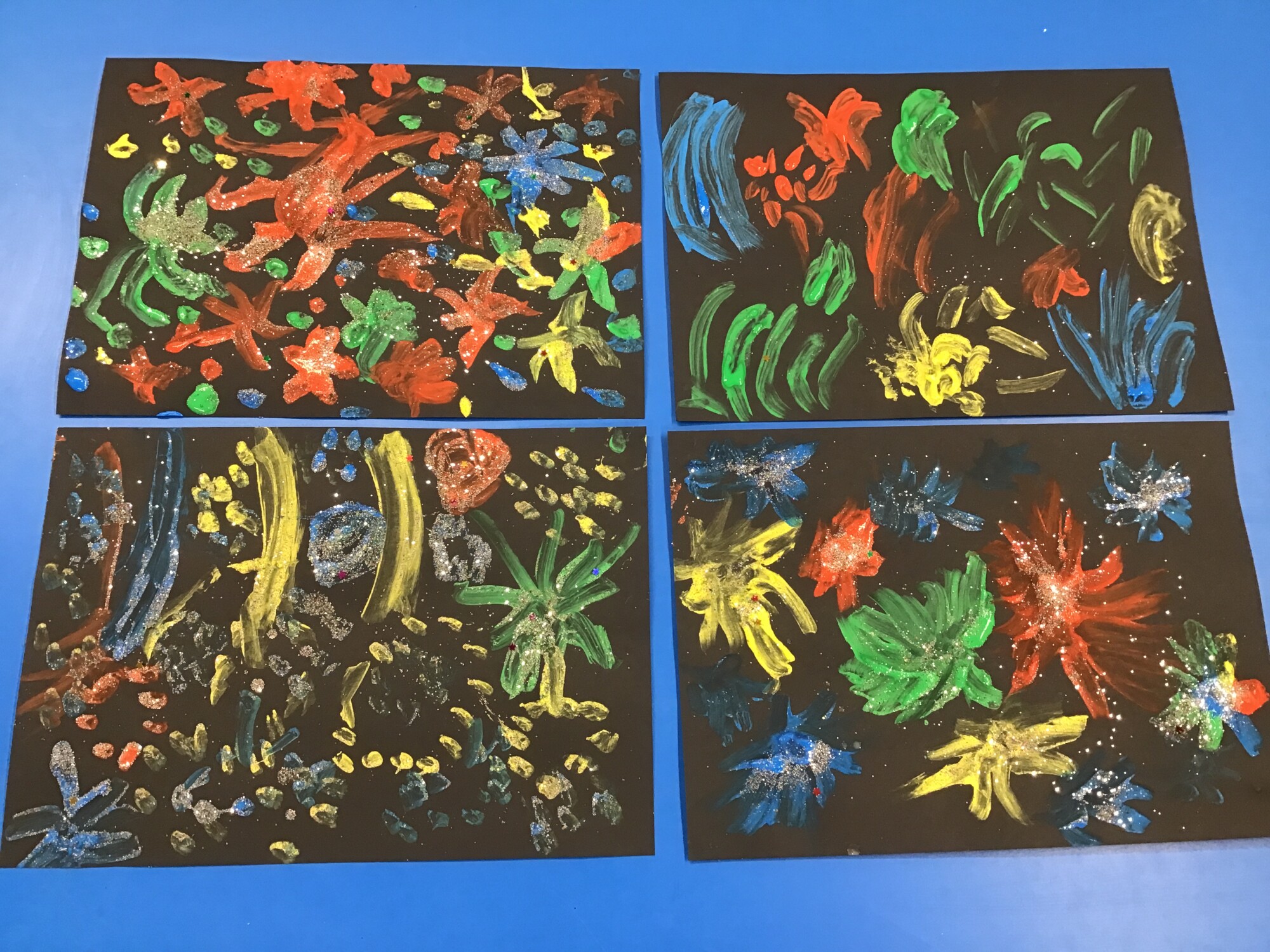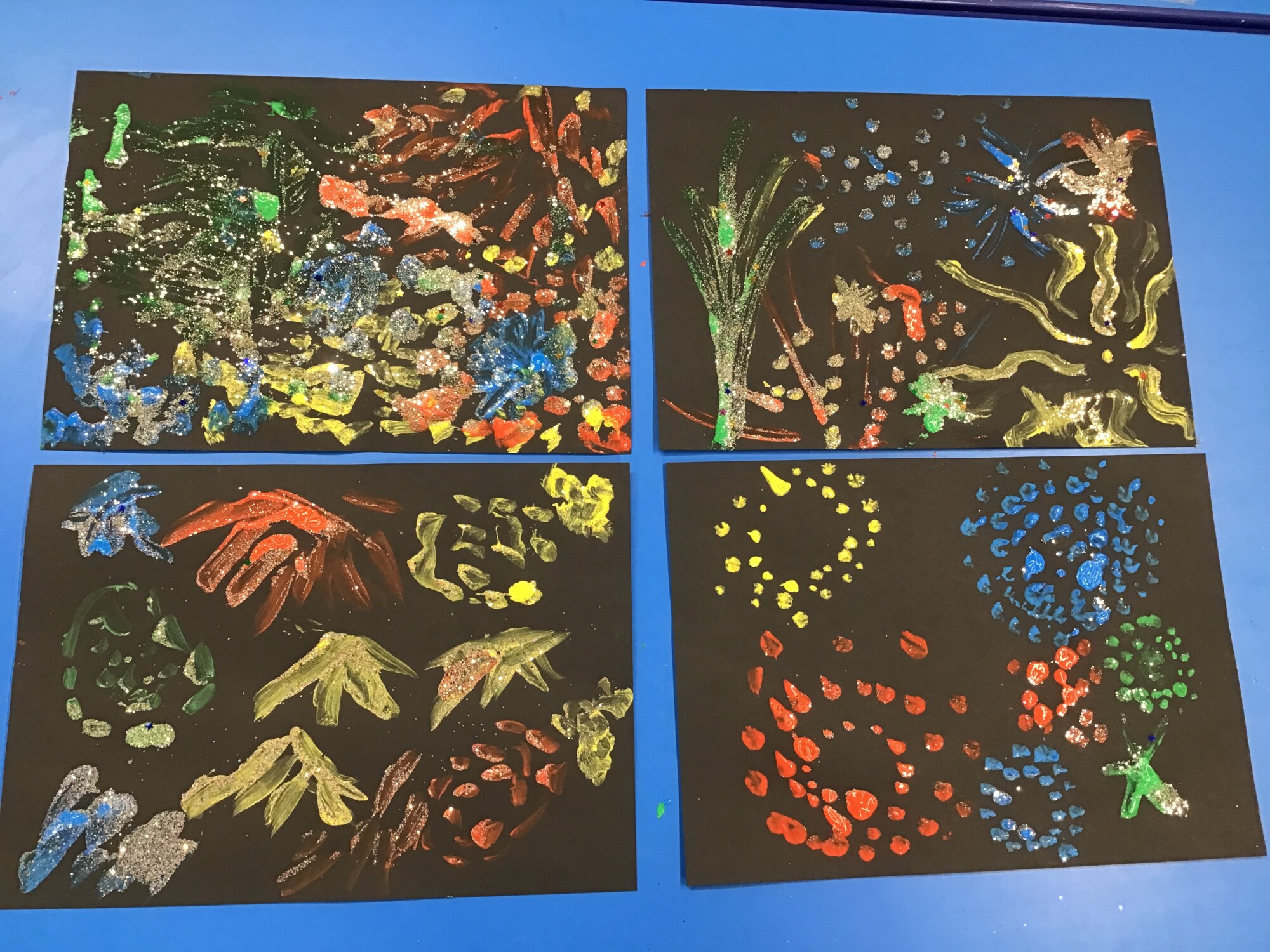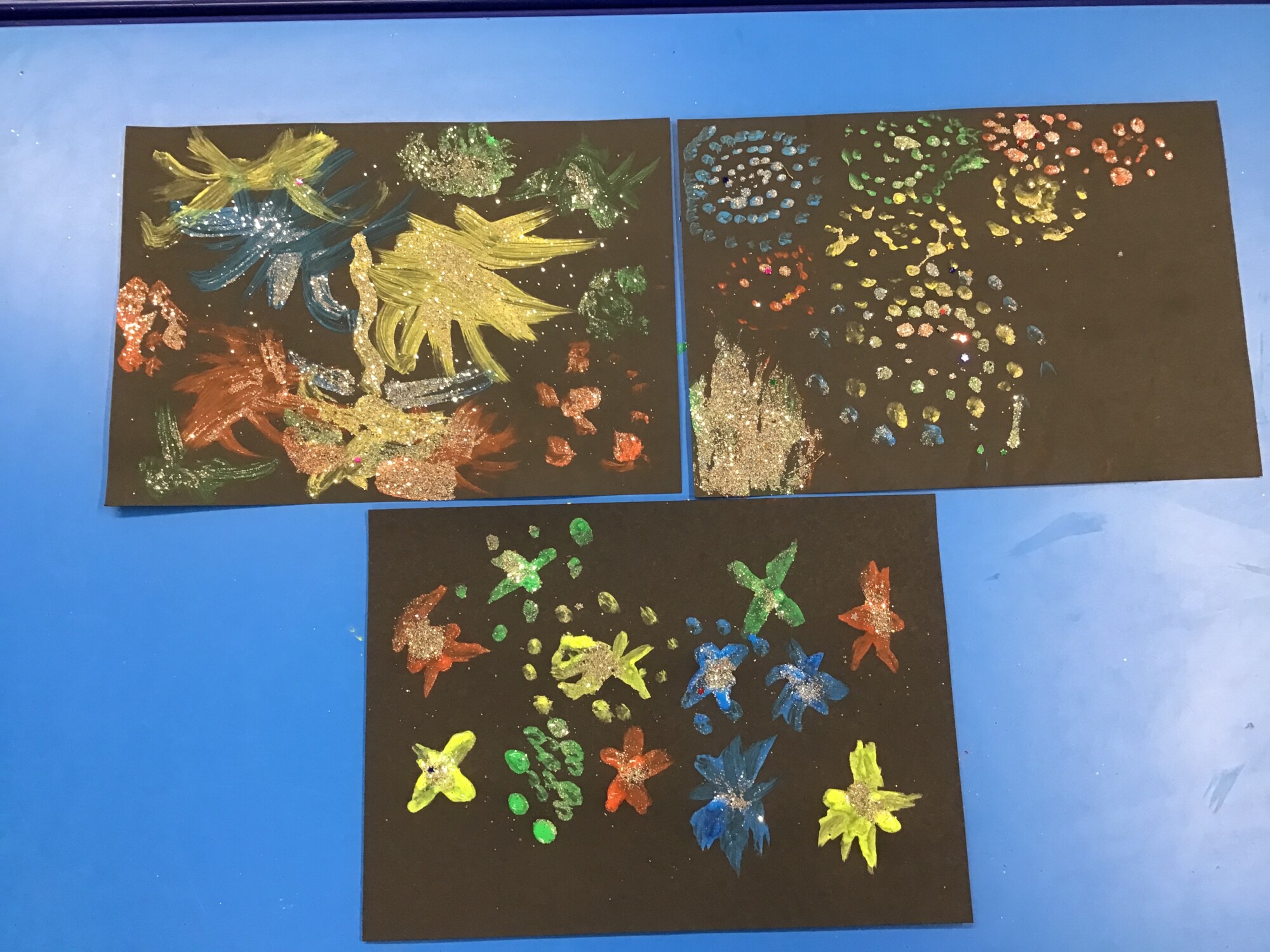 Bonfire Night was mid week and we thought it would be great fun to create our own bonfire night artwork. The fireworks all make lovely patterns in the sky. The paintings followed on from our project "Starry Night" in art last term. Lots of glitter and coloured paint was used. We think that you will love the seasonal pieces of art! Have a look below...