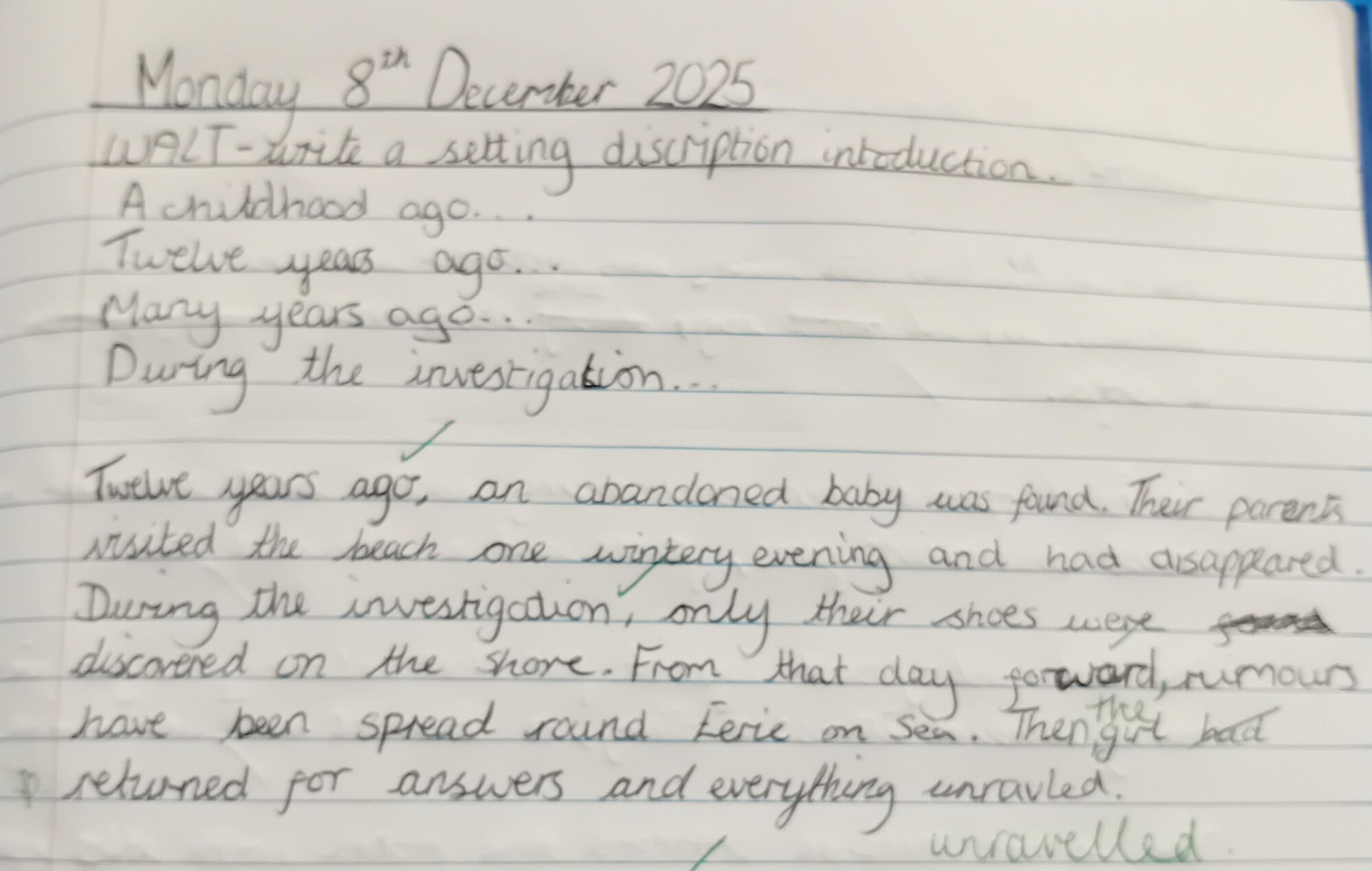In English this week, we have been focusing on setting descriptions. We have started to read an amazing book: Malamander by Thomas Taylor. It has inspired us to start to think about the tools for setting descriptions: colons for a list, participial adjectives (verbs acting like adjectives), time adverbials for the backstory, cohesion within and between paragraphs and using the senses to create a vivid picture for the reader. Next week, we will look at how to end a setting description and plan our own. In Maths, our fraction work has continued. We continued to order and compare fractions but also to add and subtract them. Yesterday, the denominators were different so we had to find the common denominator before adding!